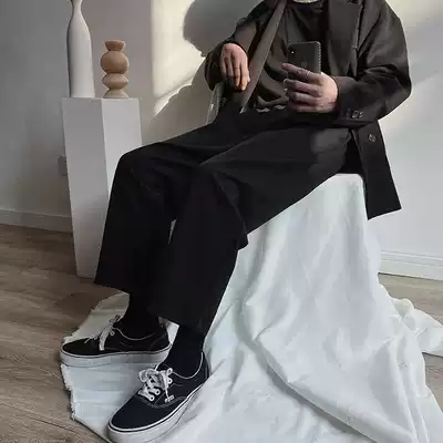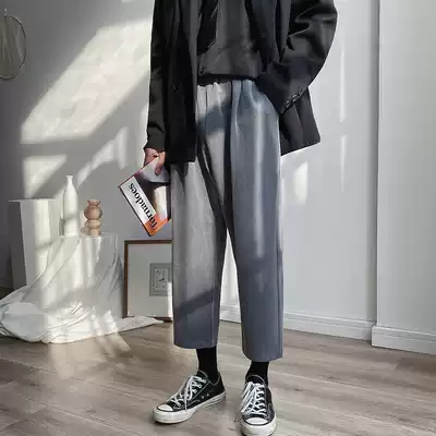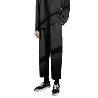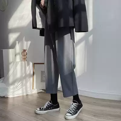 Black suit casual pants men's nine-point Korean version of the trend fat fat plus size loose straight pants spring and autumn