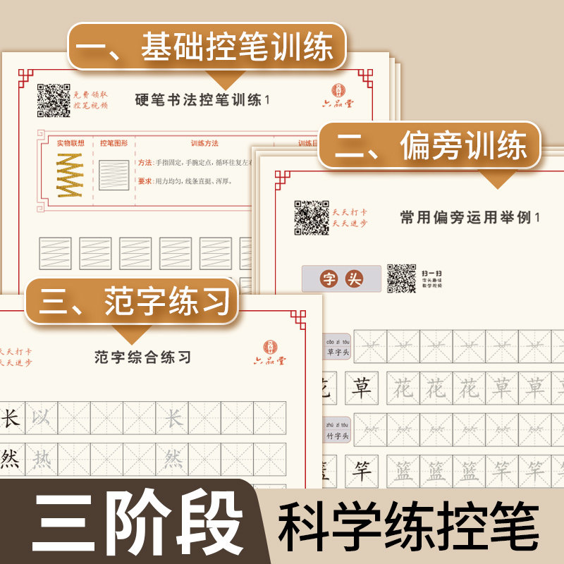 Brand New Control Pen Training Character Post 1st Grade 2nd Grade Elementary School Children Introductory Calligraphy Beginology Hard Pen Practical practice calligraphy Exercise Benn Kai Letters Font Junior Practice Control Pen Letter