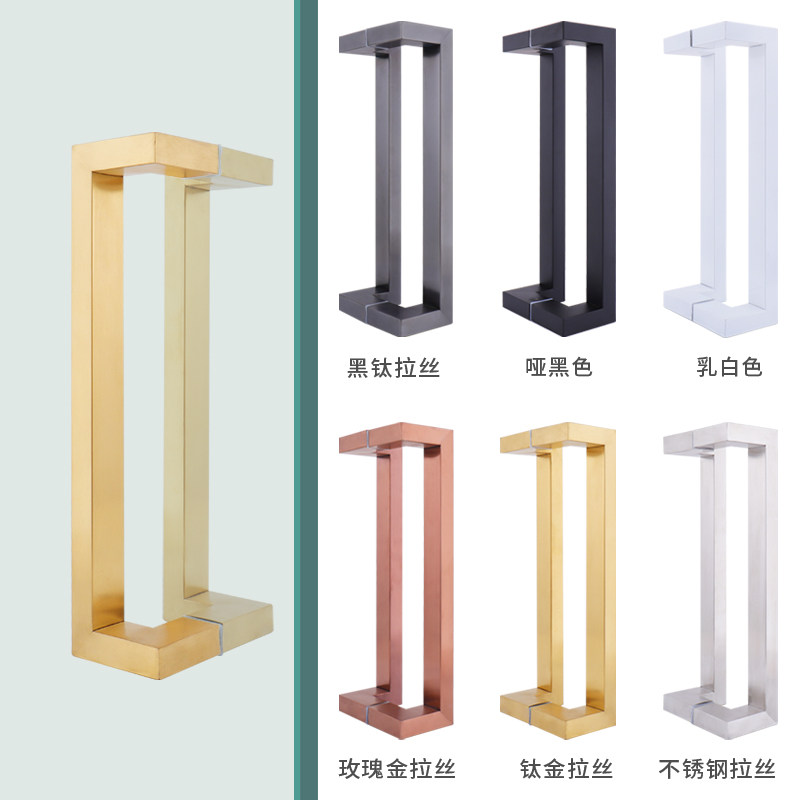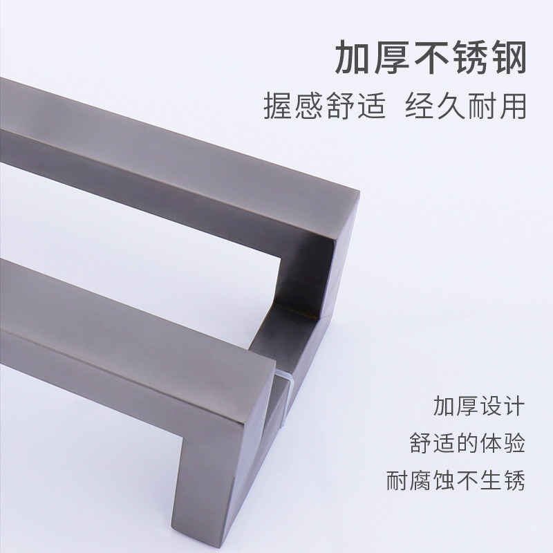 Stainless steel glass door handle square pipe double bending matt black wire drawing large door handle Ramen thickened baking lacquered armrest