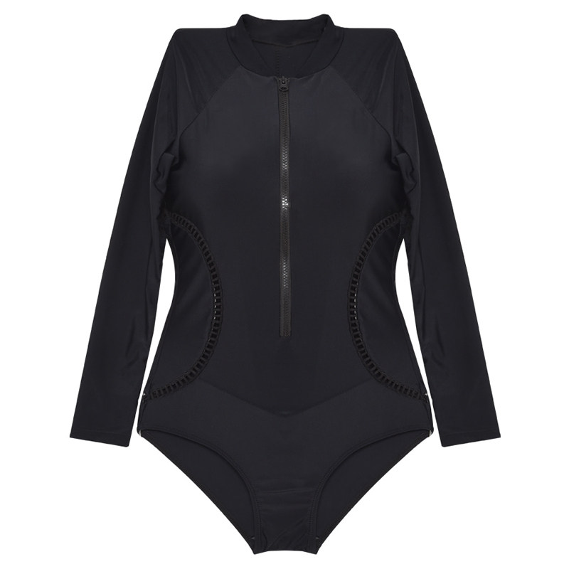 Black waist openwork Long sleeve One-piece