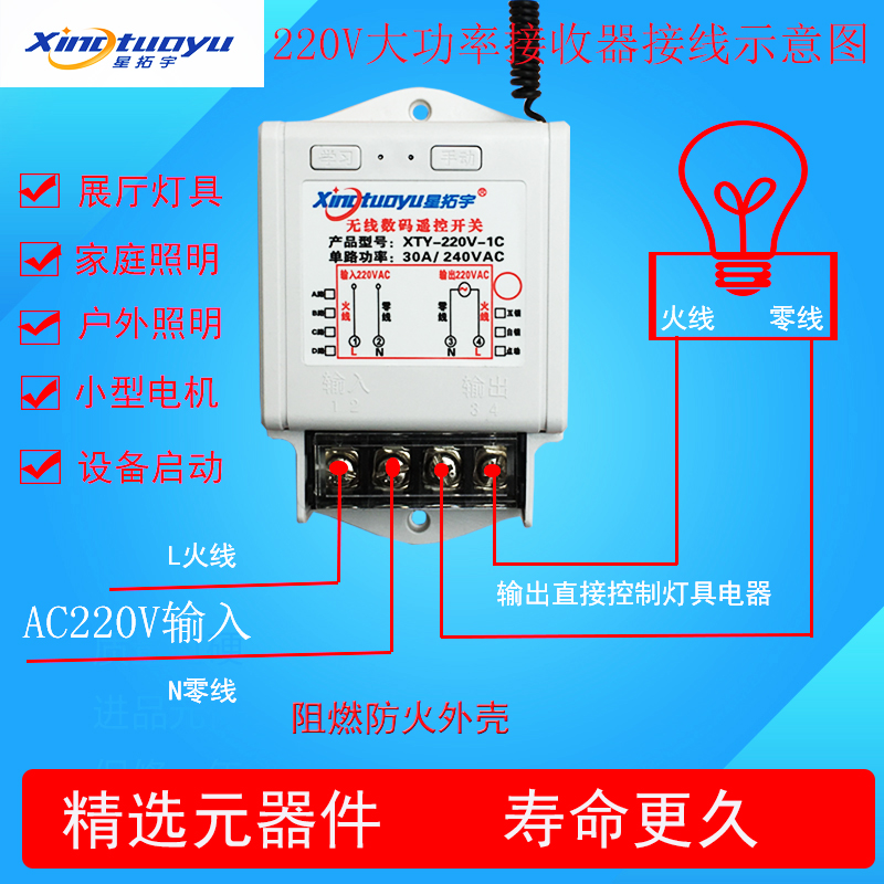 Xingtuoyu AC220V high-power long-distance wireless remote control switch light bell motor power equipment control