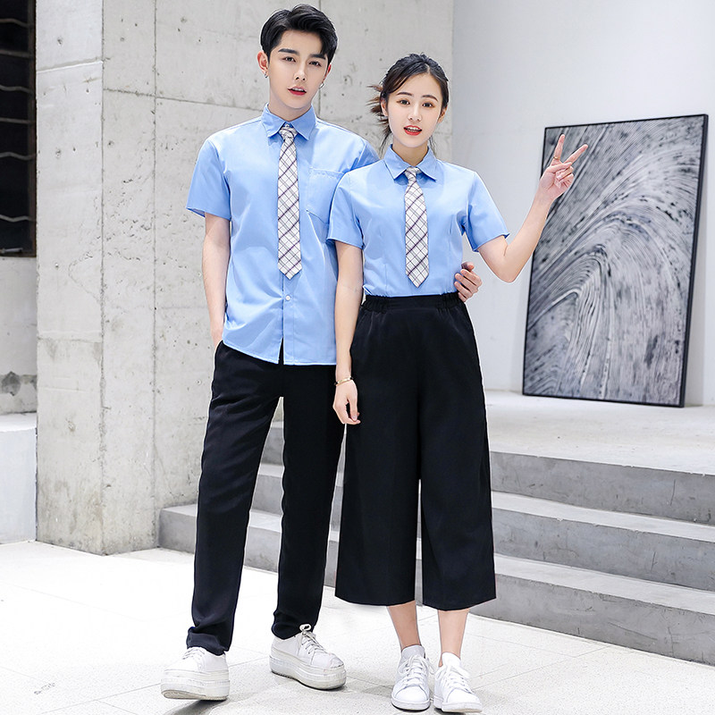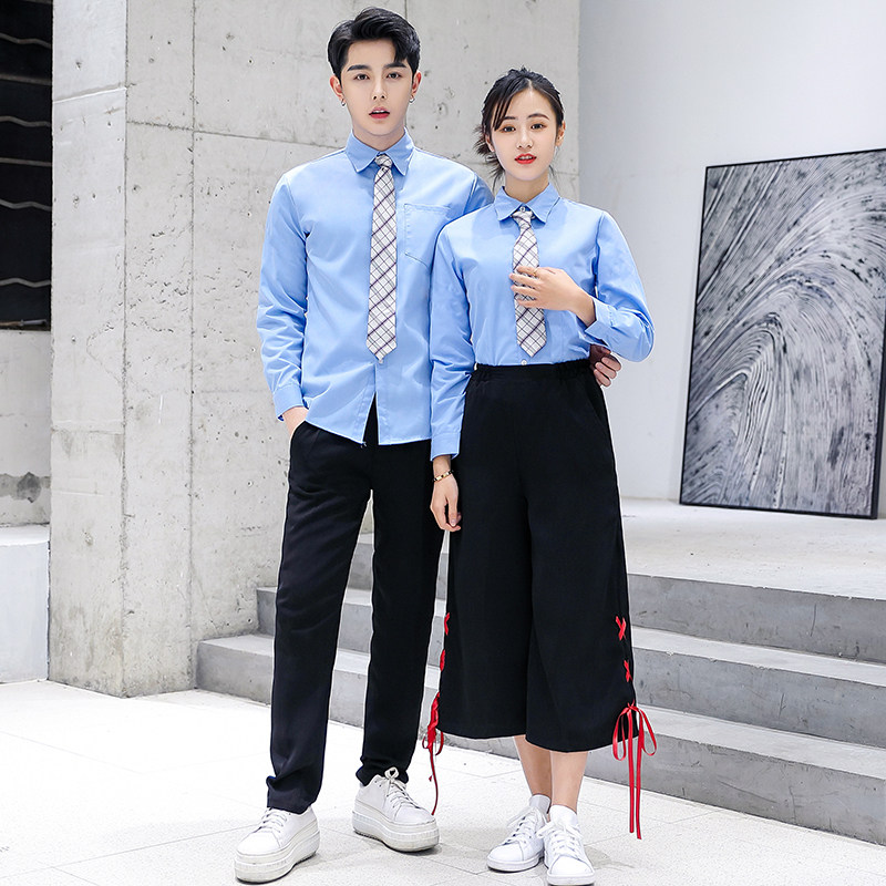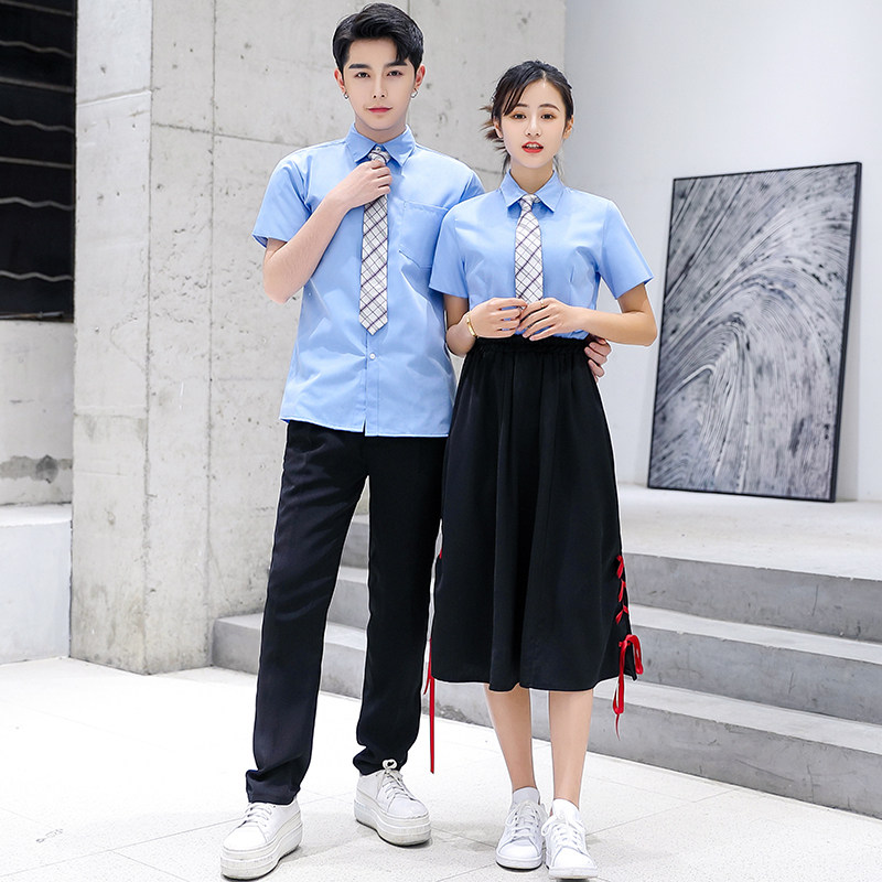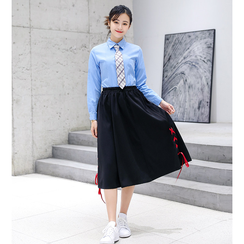 Women's blue short sleeve red ribbon skirt (red band can be removed) women's blue short sleeve red ribbon skirt (red band can be removed) women's blue long sleeve red ribbon skirt (red band can be removed) women's blue long sleeve red
