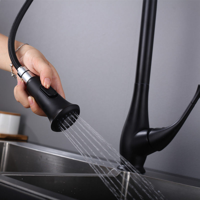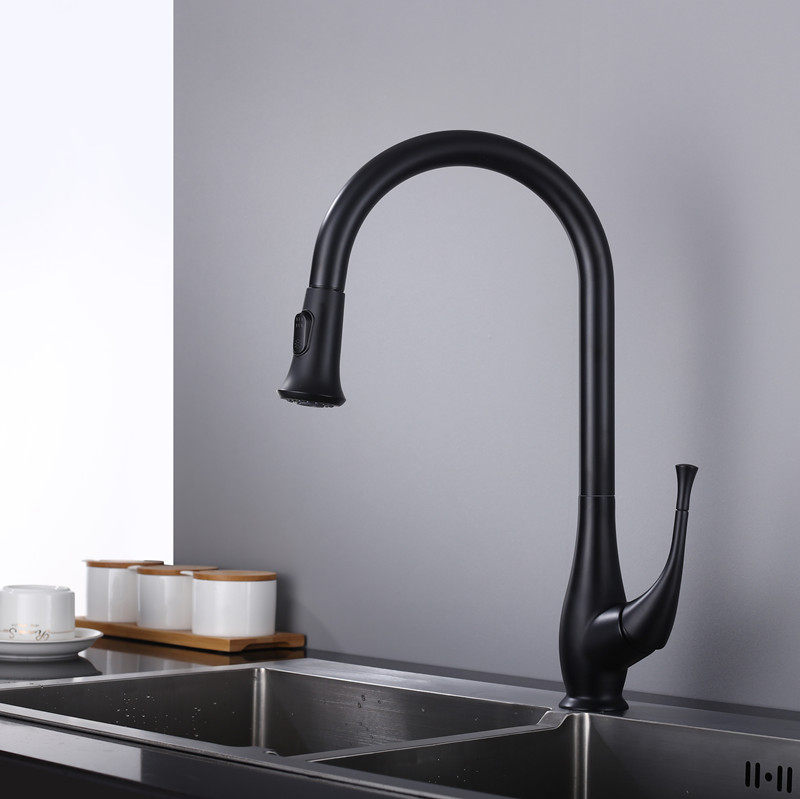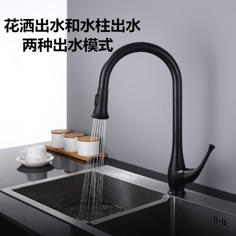 Export Germany black kitchen tap wash pot can pull sink faucet faucet kitchen cool and hot water all copper faucet