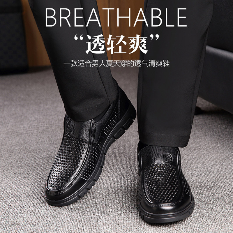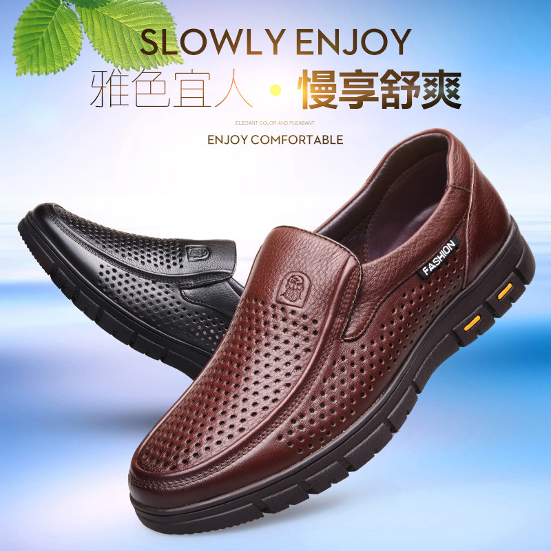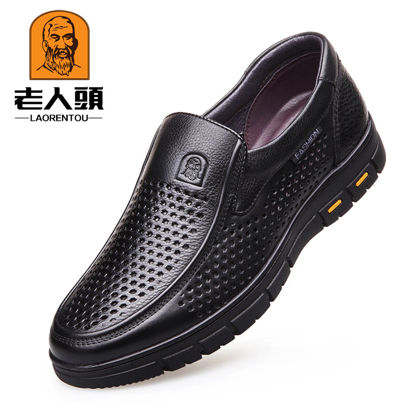 Old man's head sandals men's leather business casual cool leather shoes breathable hollowed-out hollowed-out male sandal shoe-hole leather shoes man