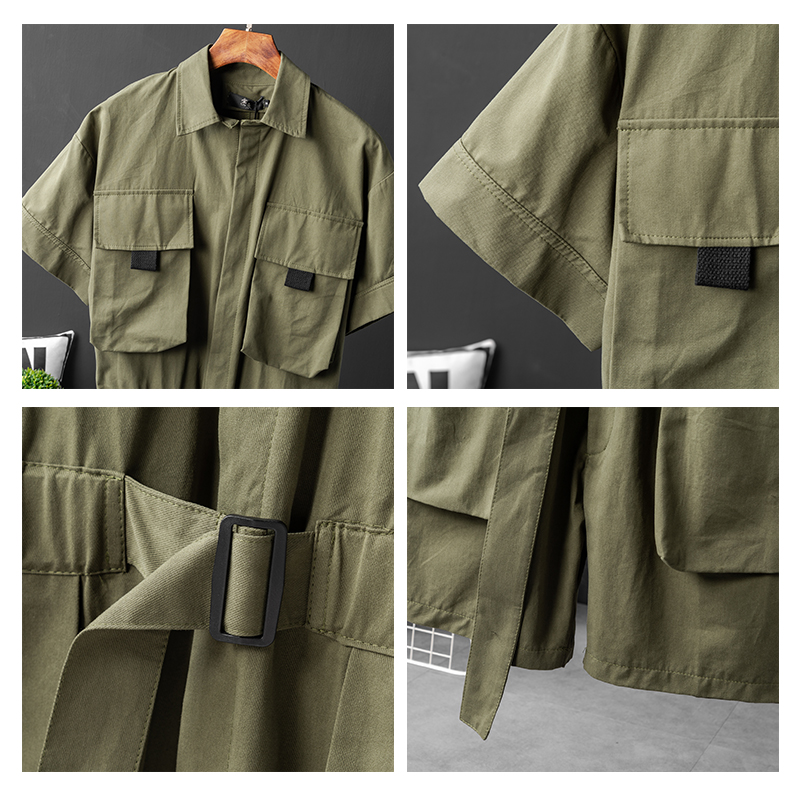 Summer tide brand personality short-sleeved shirt suit men's trend one-piece clothing hair stylist casual all-match jumpsuit men