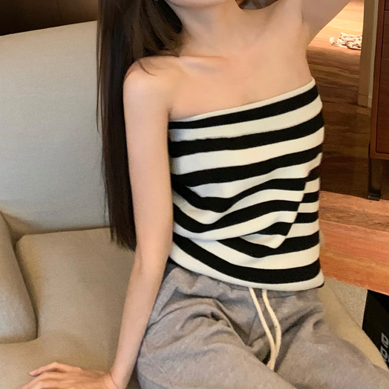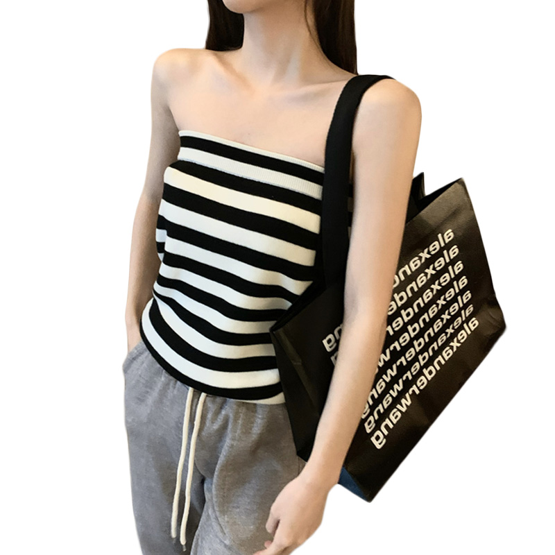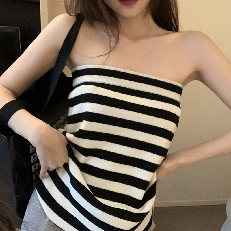 Hyun Yafeng Black and White Stripe Knitted Strapless Strapless Top Women's 2021 Summer Camisole Wear Interior and Exterior