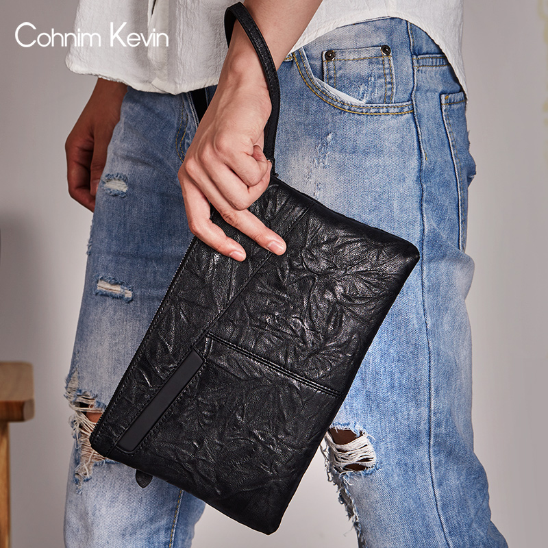 Cohnim Kevin men's handbag genuine leather business front layer cowhide jacket bag clutch bag men casual leather bag men