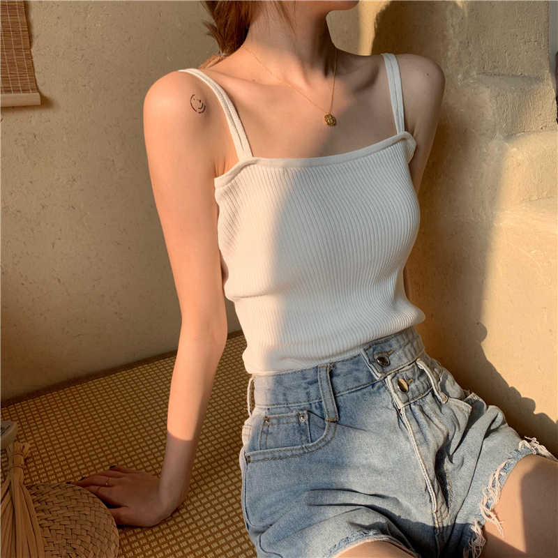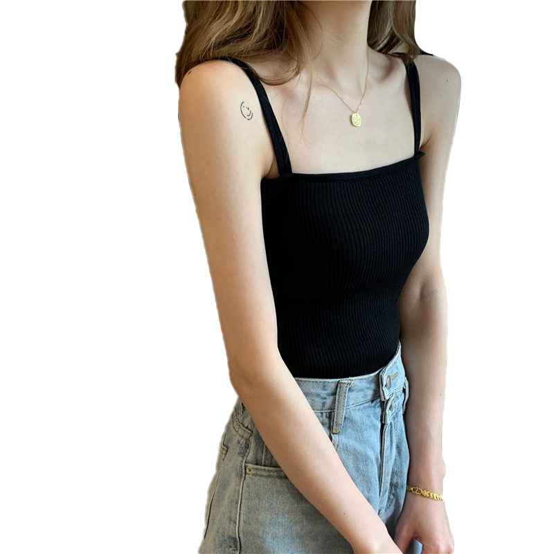 Black knitted bottom vest 2020 summer new women in super fire suit with a double sling sexy topper
