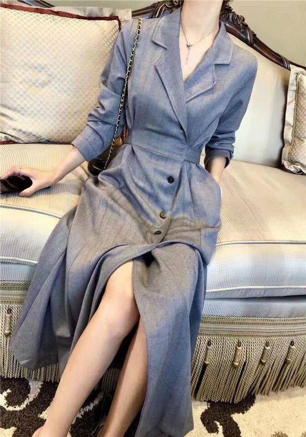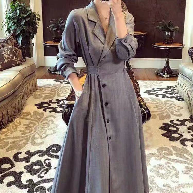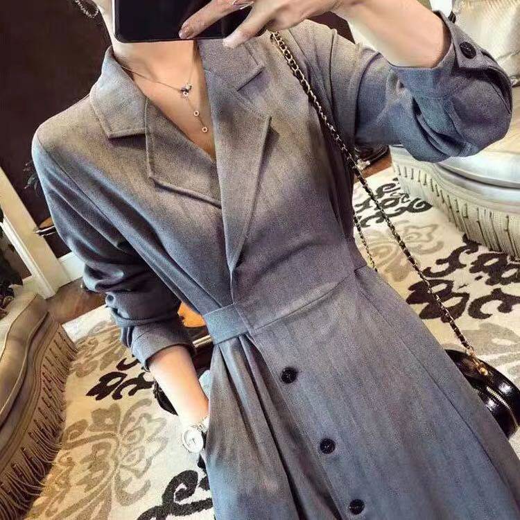 200 pounds of fat mm slim dress spring and autumn new large female wear decrease age - old meat - long skirt and autumn