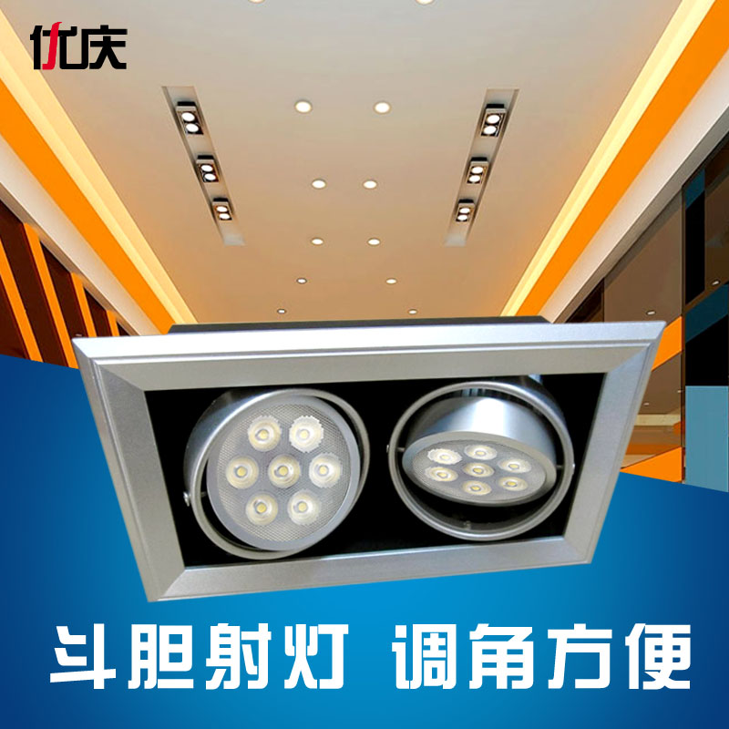 Square LED Smallpox Light Bean Bile grid bucket Spotlight Oblong single head Double head Three-head Embedded square 12w
