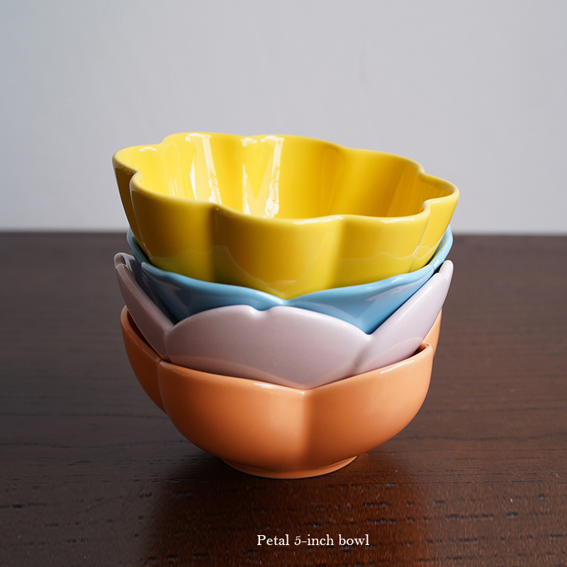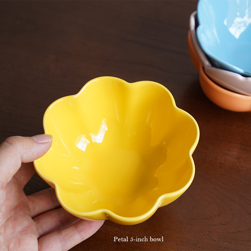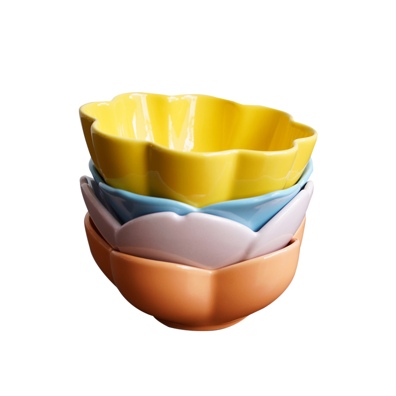 Candy Color Cute Petals 4 Colors 5 Inch Ceramic Small Bowl Fruit Salad Bowl Rice Bowl of Snack Bowl Sweet Bowl