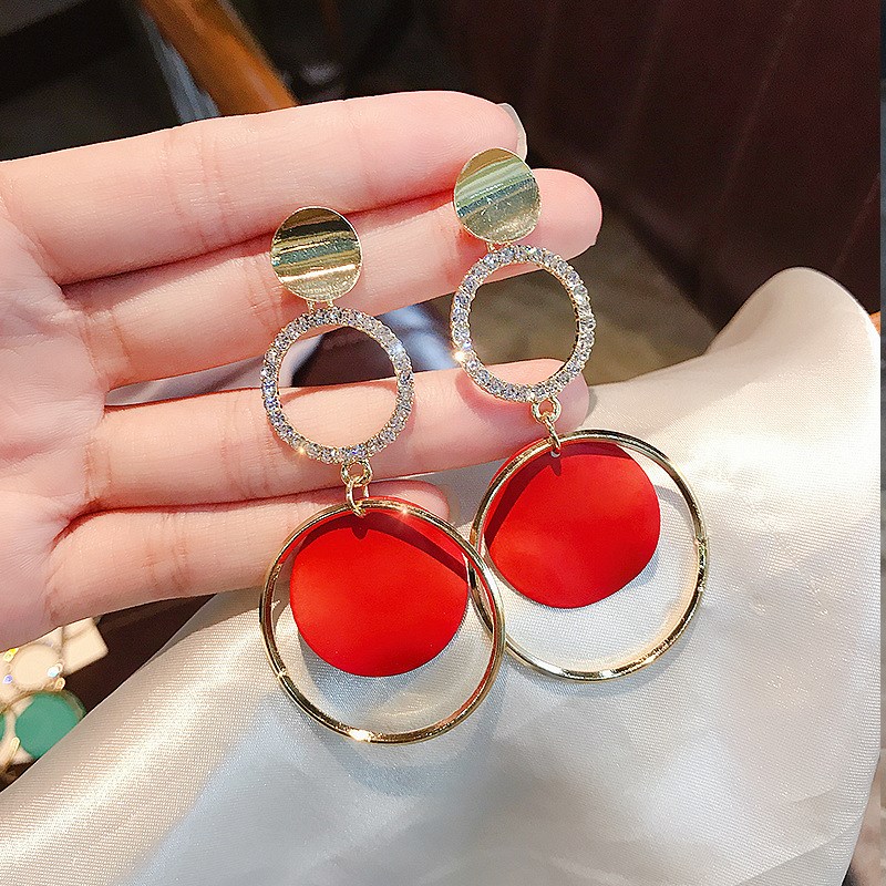s925 Silver Needle Sexy Fashion Hyperbolic Circles Earrings Earrings Woman Korean Temperament Personality Long Version Ear Pin Net Red Earrings