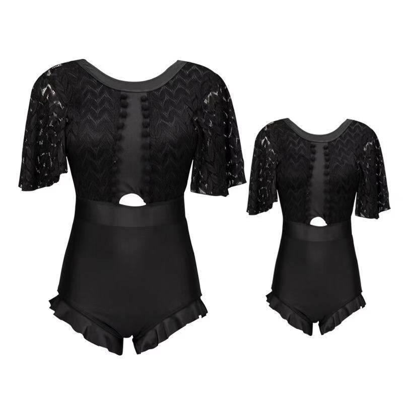 Parent-child swimsuit female mother and daughter new girl black lace swimsuit body covering belly slim children swimsuit
