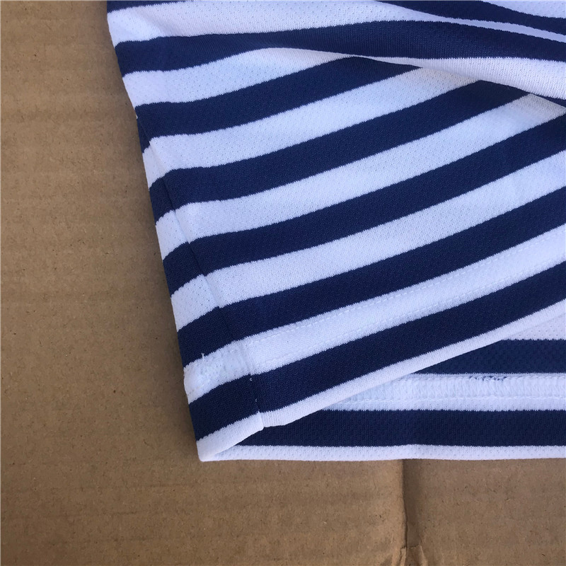 Blue and white striped half-sleeve short-sleeved physical training suit Quick-drying air sea soul crew neck shirt