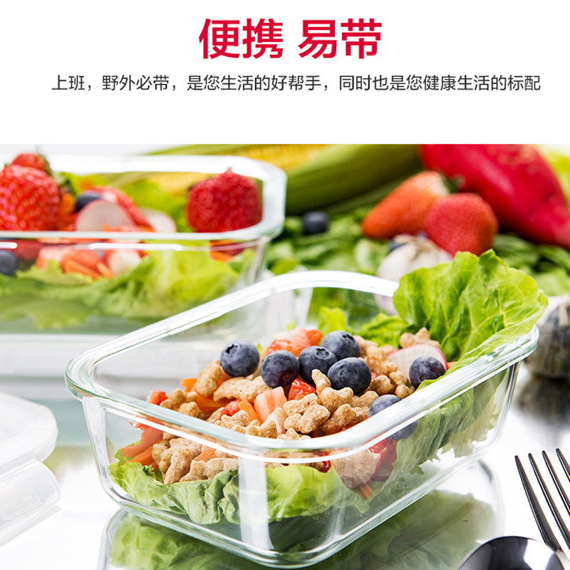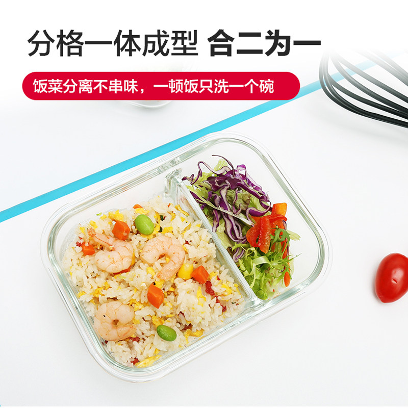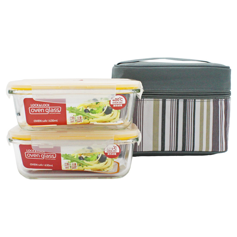Lock lock Lock glass fresh-keeping lunch box set Separate Bento bag Microwave oven portable office worker with rice 2pcs