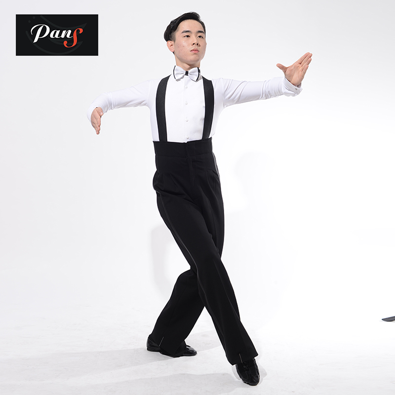 Modern dance waltz dress tuxedo suit shirt with wings collar with bow tie cufflinks