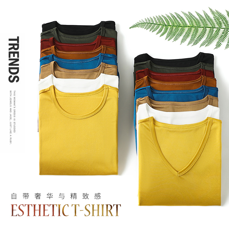 V-neck-cherry red v-neck-dai green v-neck-light mustard v-neck-caramel v-neck-jingya black v-neck-light khaki v-neck-blue v-neck-pearl white round neck-cherry red Round neck - Dai