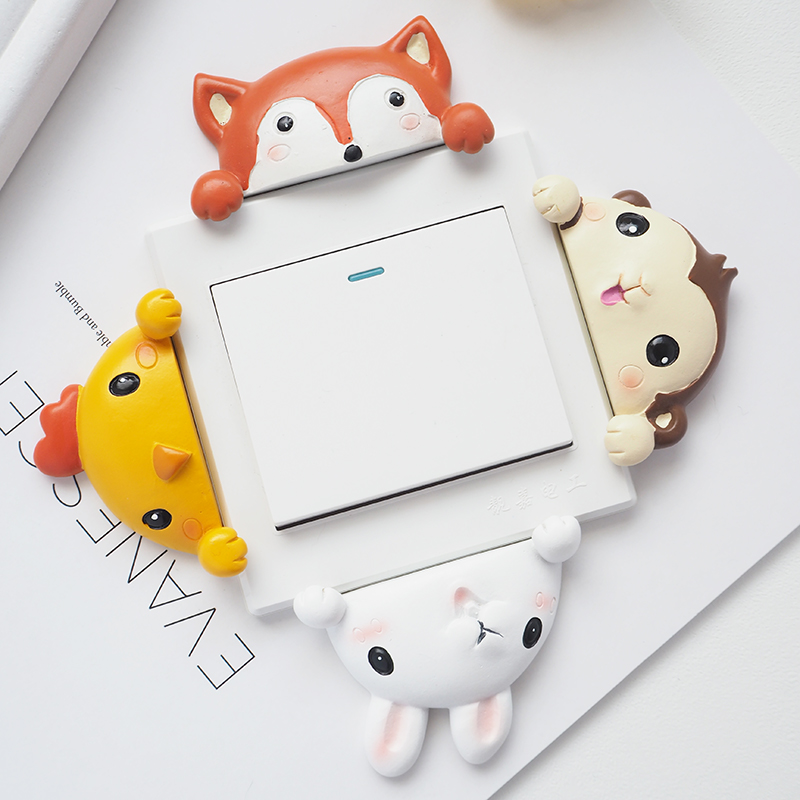 Cute Resin Switch Patch Home European Style Protective Sleeves Small Animal Living Room Bedroom Wall 3d Solid Socket Wall Sticker
