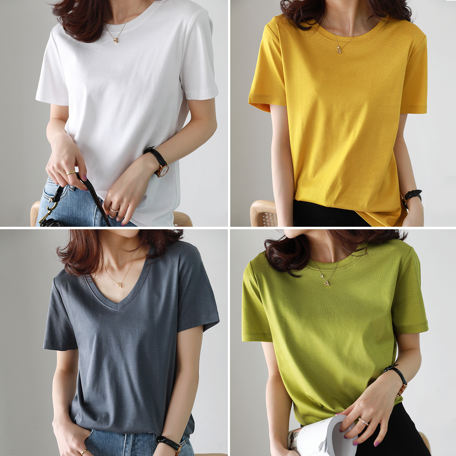 Raspberry powder round-led raspberry powder V collar high order grey round collar high order grey V collar mango yellow neck yellow V collar black round collar black V collar Tiffany green round collar Tiffany green V neckline honey tea brown round nectar tea brown V collar