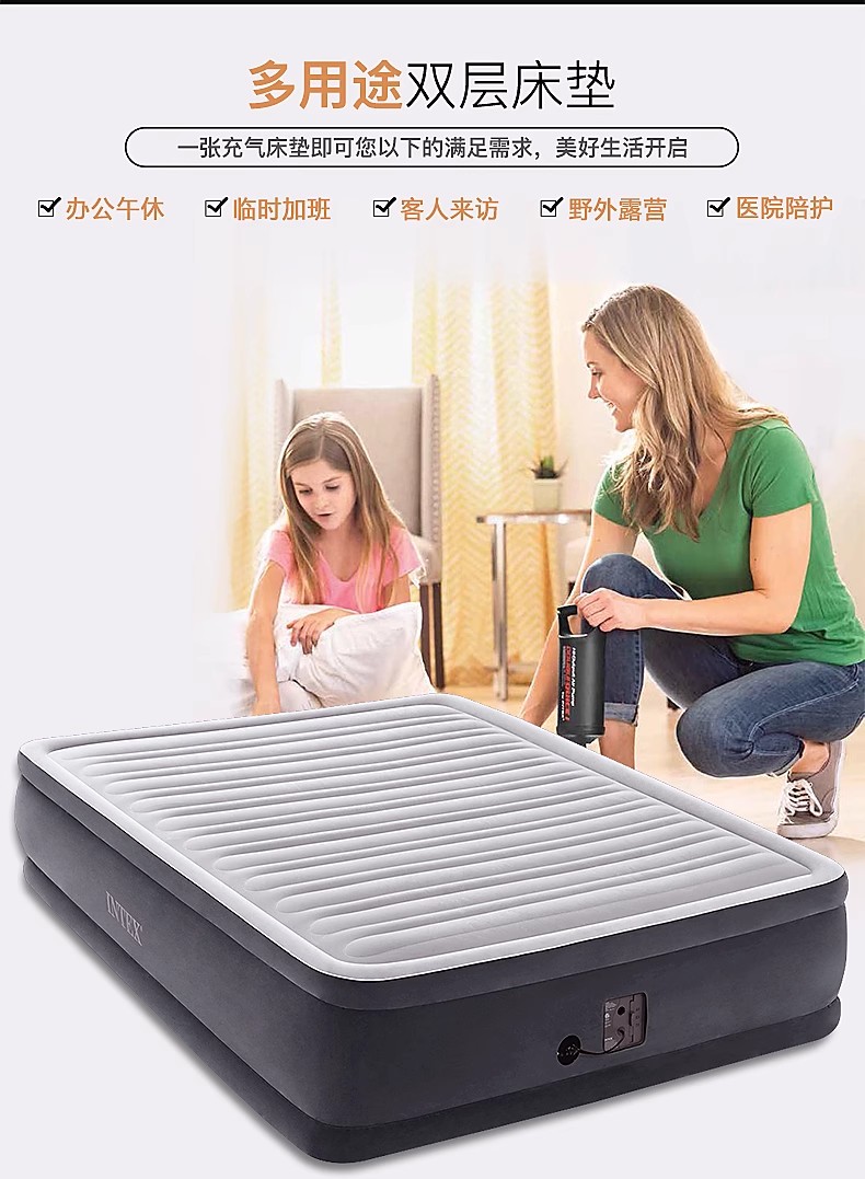 INTEX inflatable mattress home outdoor single double air cushion bed electric thickened double layer portable folding gas bed-Taobao