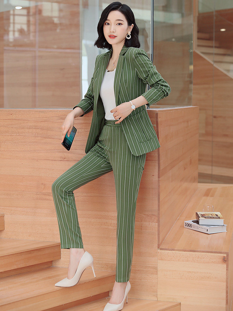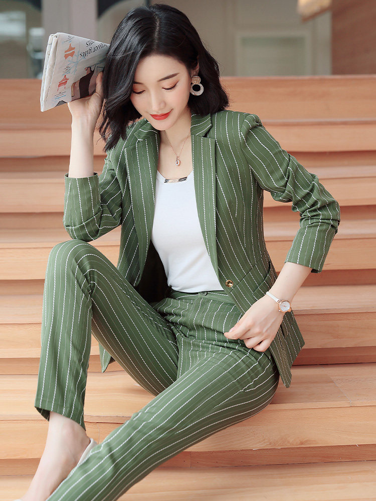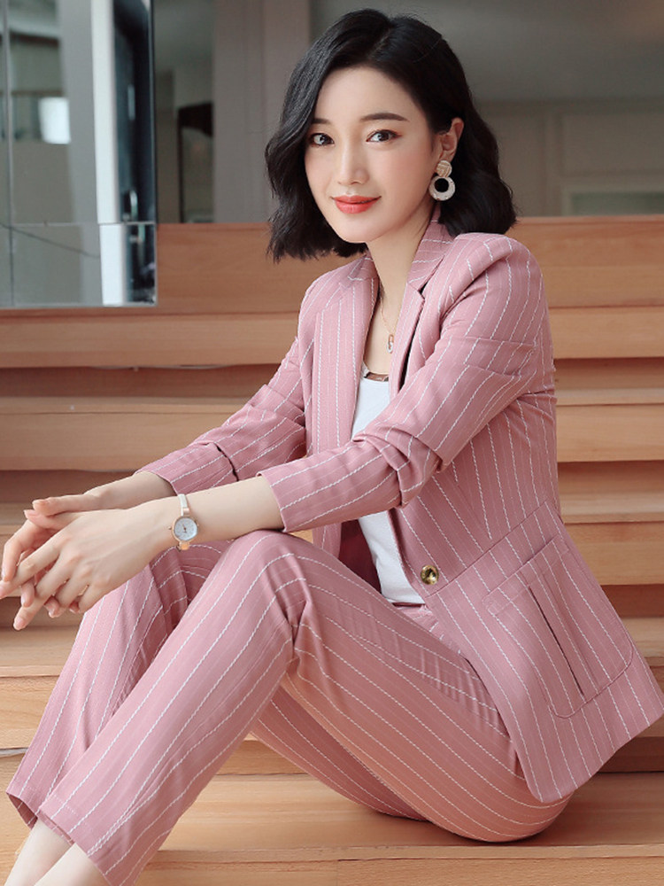 Small suit jacket female spring new style long sleeve slim fashion temperament leisure pink stripe suit suit two sets