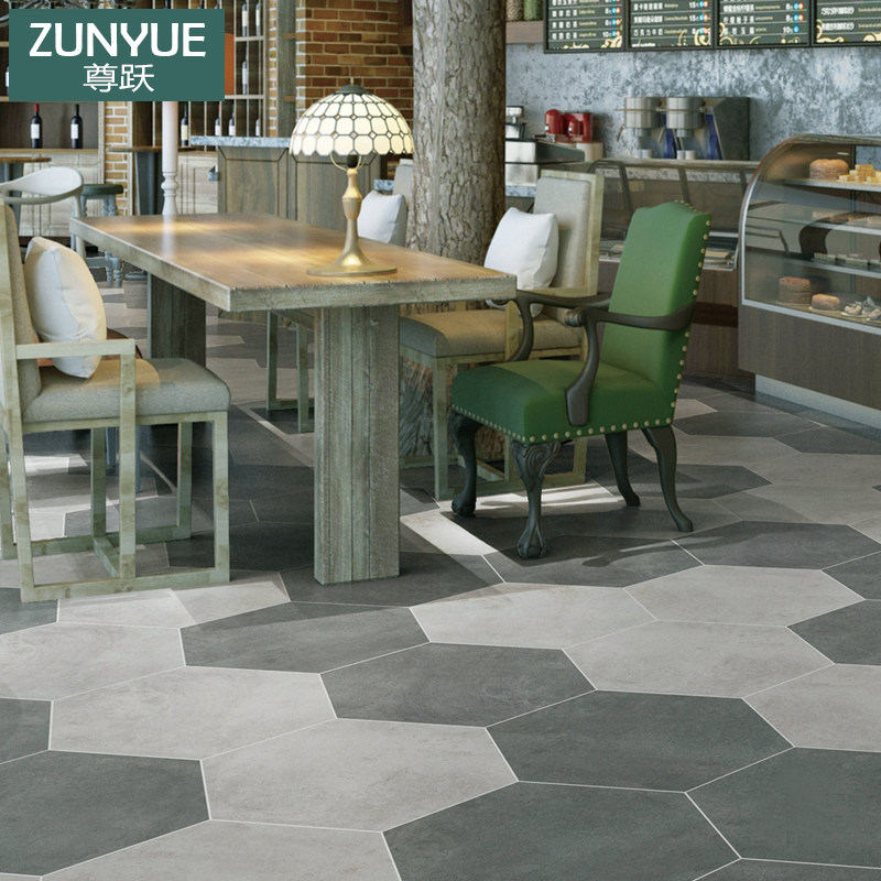 Zunyue Nordic cement gray hexagonal brick 520x600 industrial style floor tile hexagonal tile mall antique brick