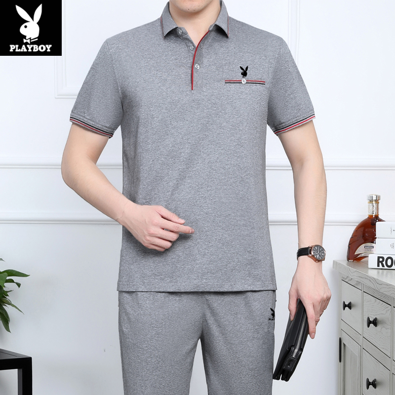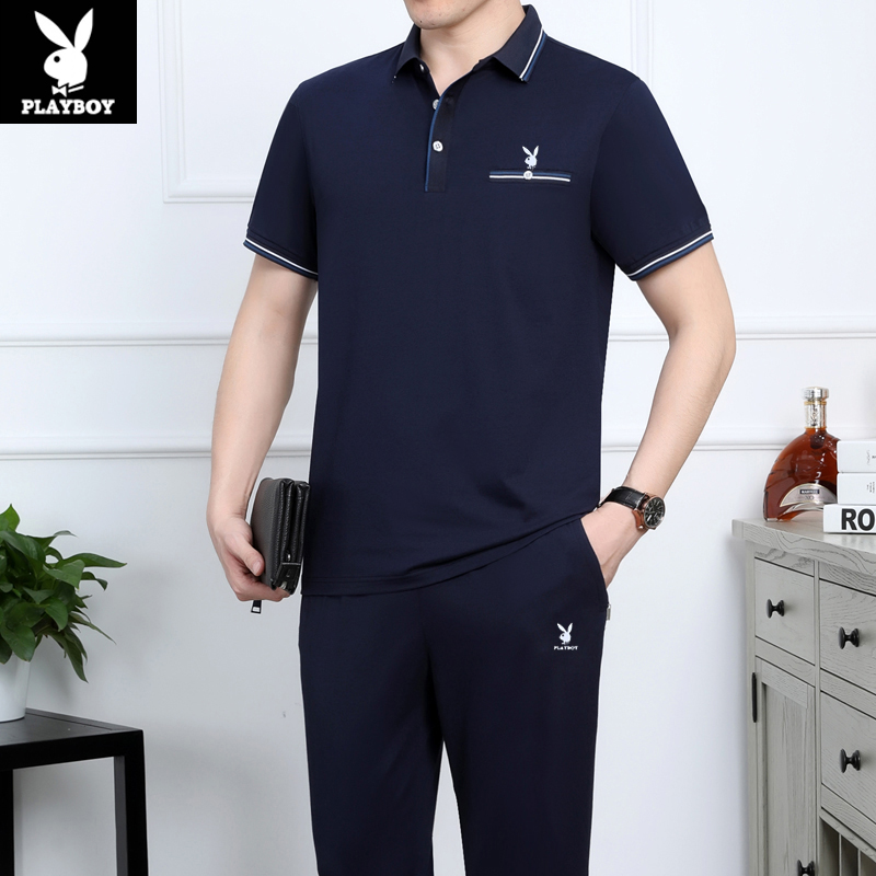 Playboy summer men's sports suit middle-aged and elderly father short-sleeved middle-aged father brand sportswear men