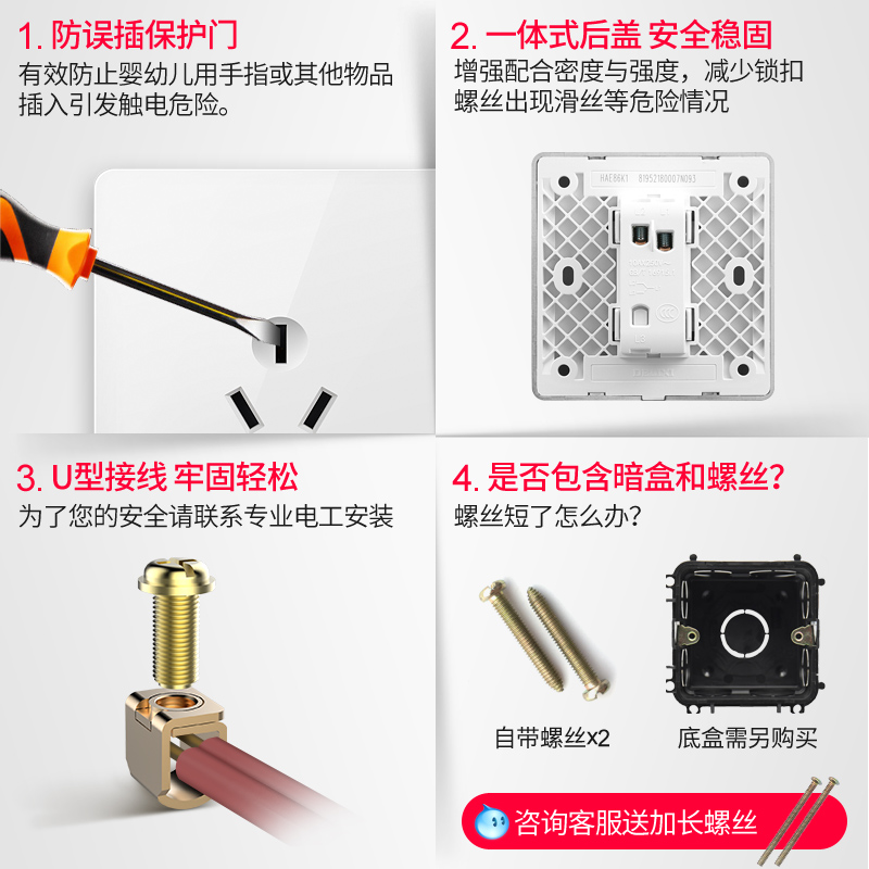 Delixi 16a air conditioning socket panel household 16A three-hole high-power water heater special three-hole air conditioning socket
