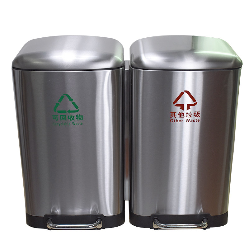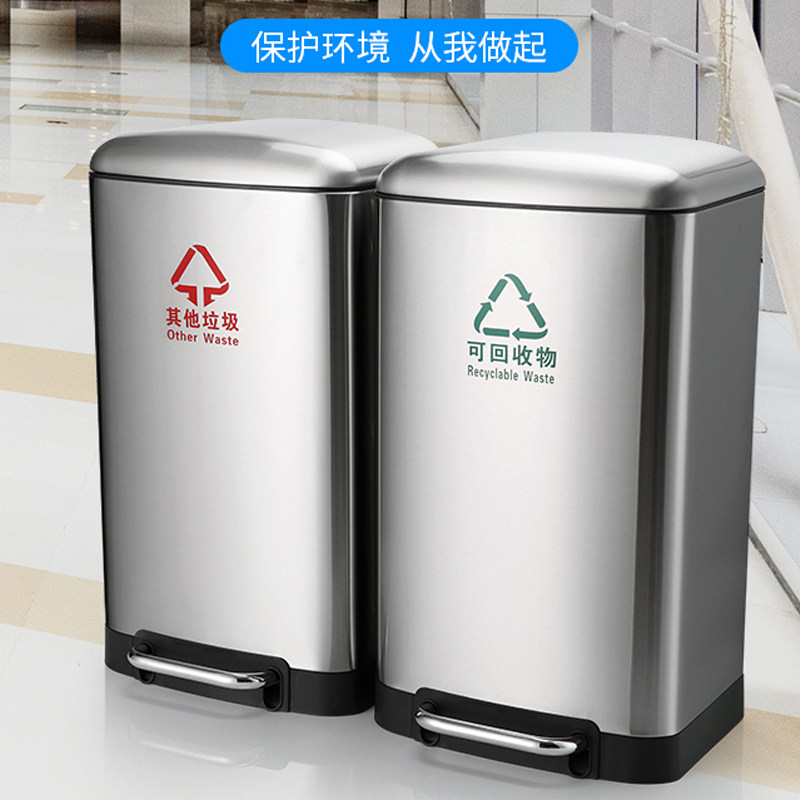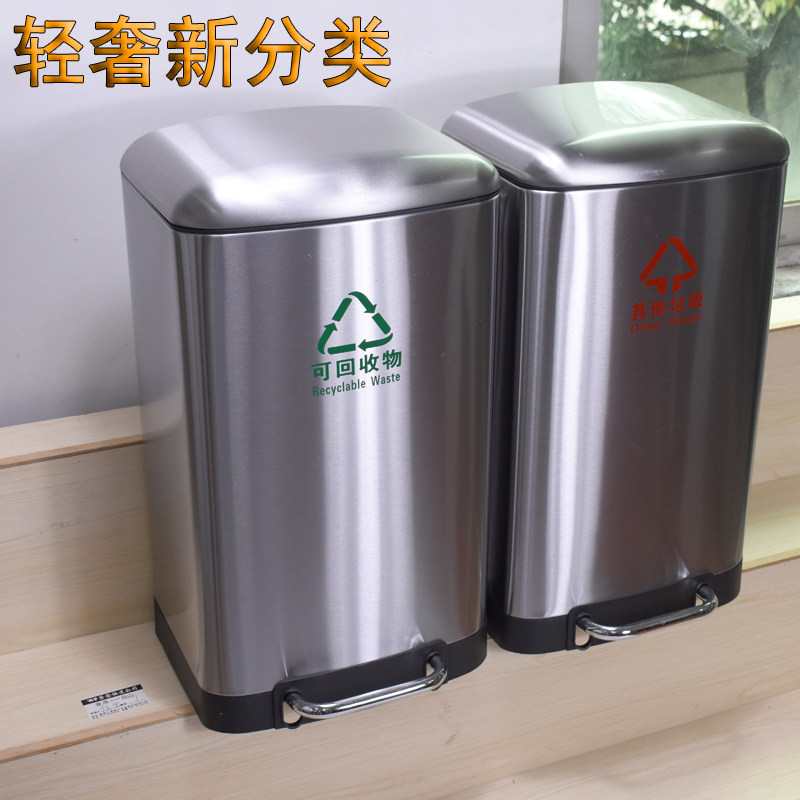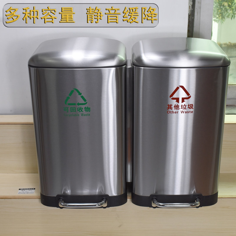 Large capacity stainless steel pedalling barrel clean sorting bin with lid muted deodorant 50 liters 60 liters 100 liters
