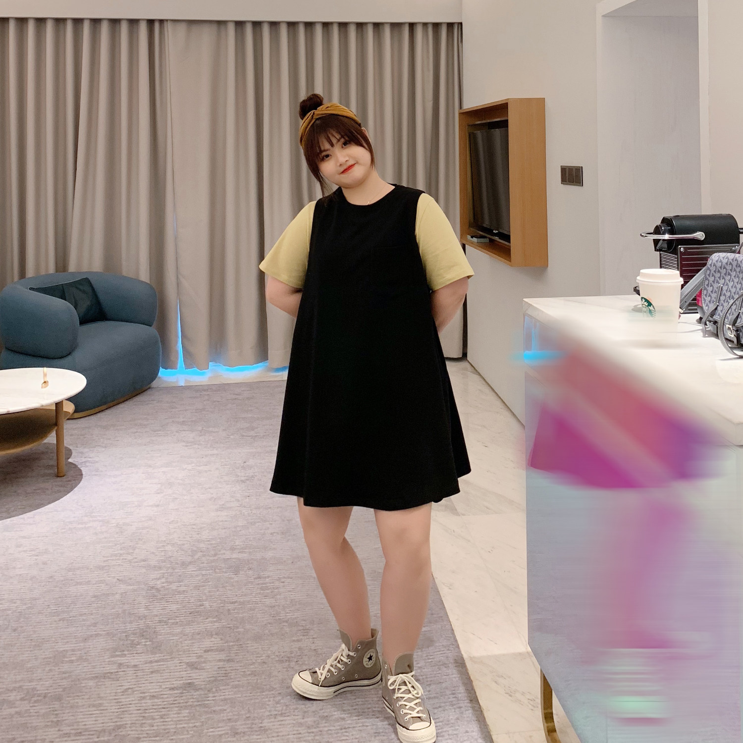 ALIN custom large size women's clothing spring 2020 age reduction vest skirt women's fat mm cover belly thin loose dress