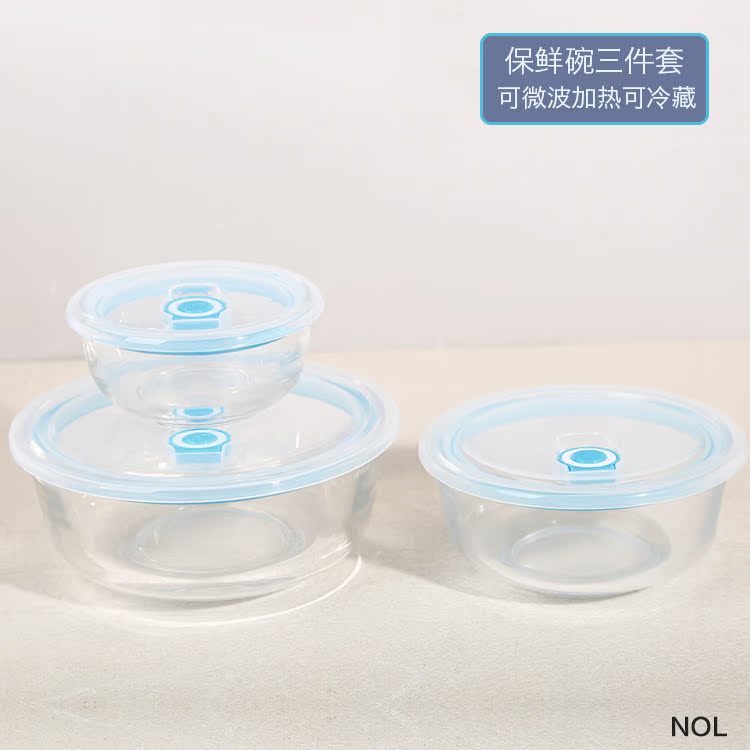 Heat-resistant glass lunch box refrigerator fresh Bowl microwave oven available sealed bowl Bento bowl three-piece set