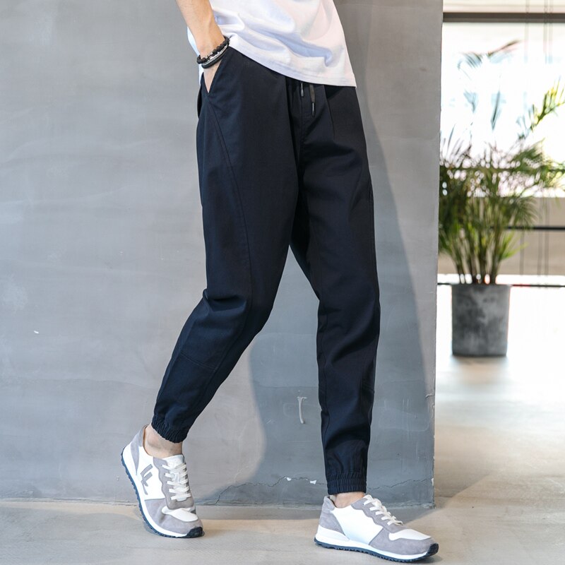Trendy brand spring and summer loose casual pants men's bunched overalls straight tube slim fit all-match pants men's trendy pencil pants men