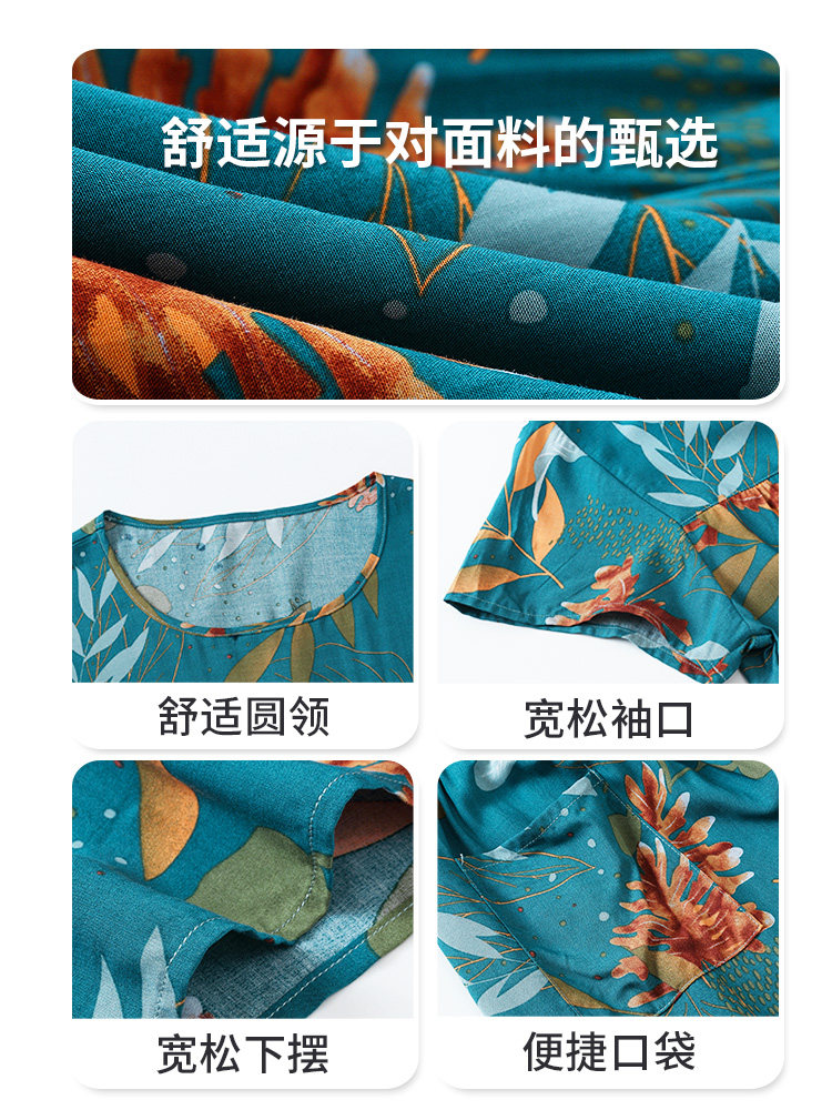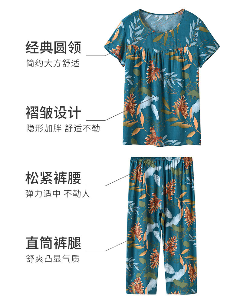 Middle-aged mother cotton silk pajamas women's summer thin section middle-aged and elderly man-made cotton loose large size suit home service outerwear