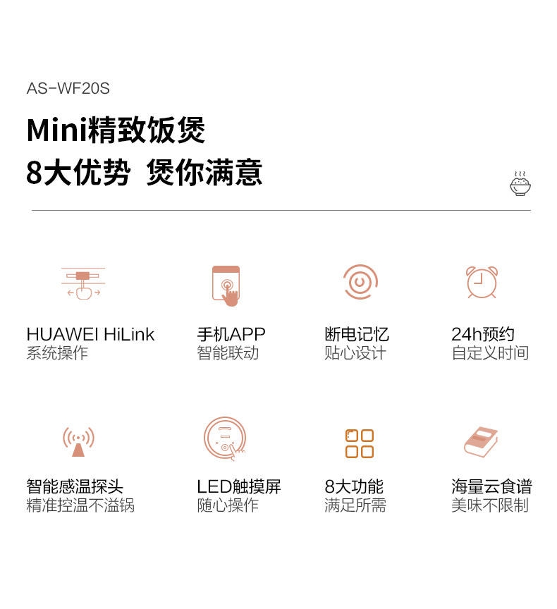 Amos supports Huawei intelligent ecological remote control 2 liters 1-2 people to cook porridge and eat mini small electronic pot