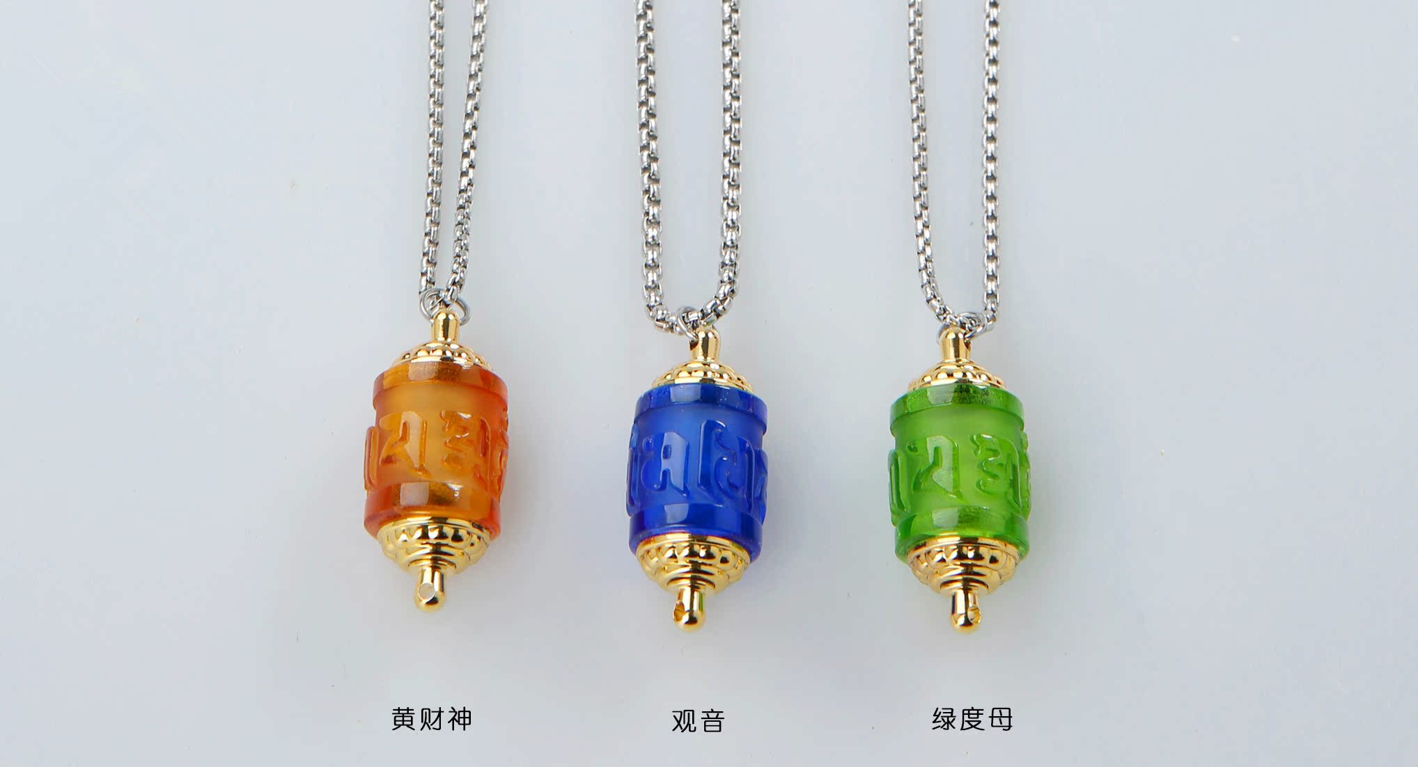 Exquisite new Chinese lion miniature warp and green degree Mother Huang Caiyin Guanyin's Glazed Pendant Transfer Wheel Drum