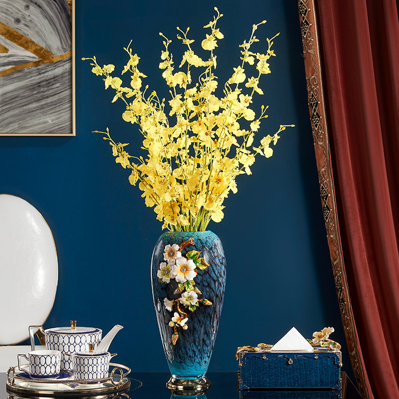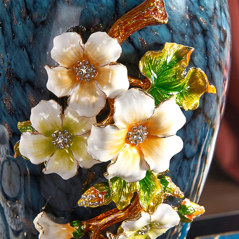 Light luxury high-end enamel stained glass vase ornaments living room entrance European style home arrangement American home decorations