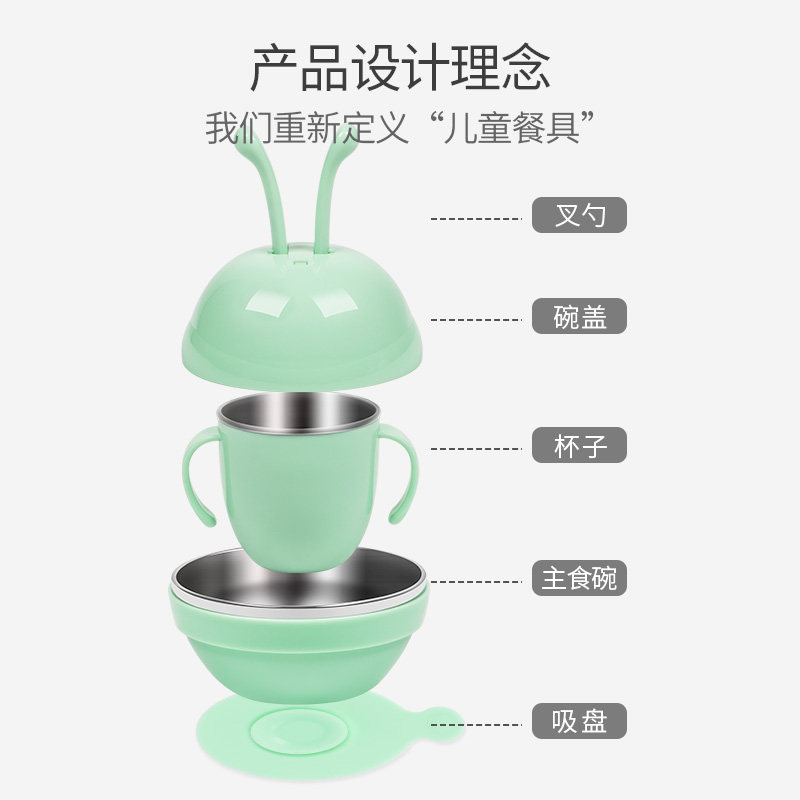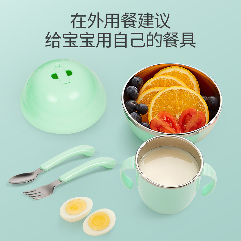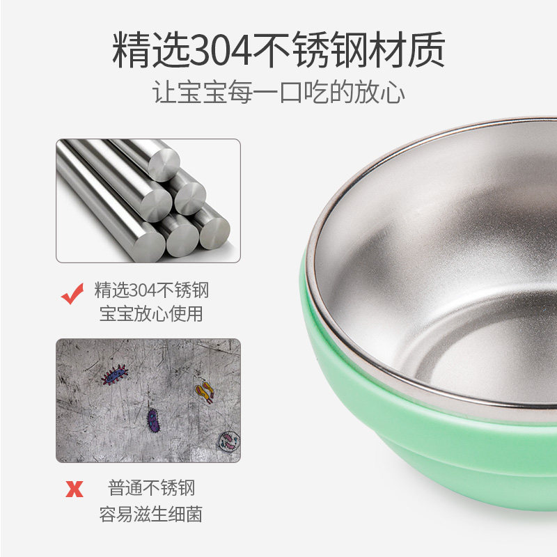 Baby Vice Food Bowl Outside to carry children Tableware Stainless Steel Anti-Fall Anti-Burn Bowl Spoon Suit Water Injection Insulation Bowl