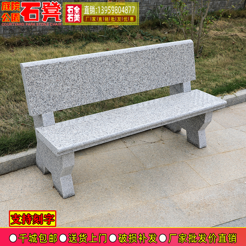 Stone chair outdoor courtyard garden backrest marble carving Park stone table stool long strip stone decoration