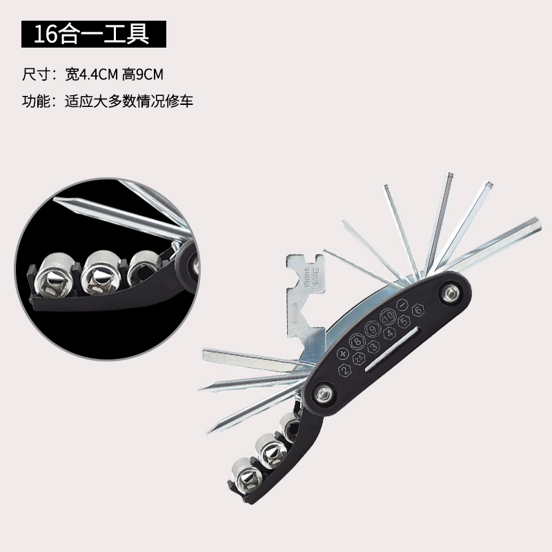 Mountain bike folding repair tool 16-in-1 hexagonal wrench multi-purpose car repair combination portable tool set