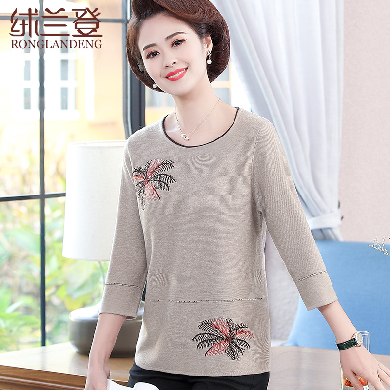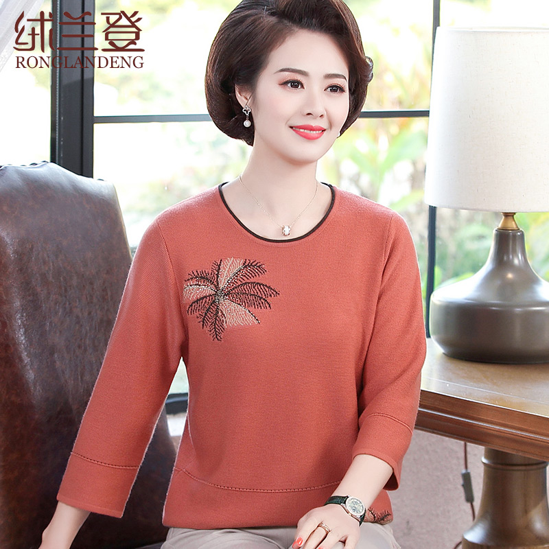 Mom Chun Autumn Fashion New 70% Sleeveless Clothing Fashion Middle Aged Women's Style Round Collar T-shirt Clothing 40-50 years old