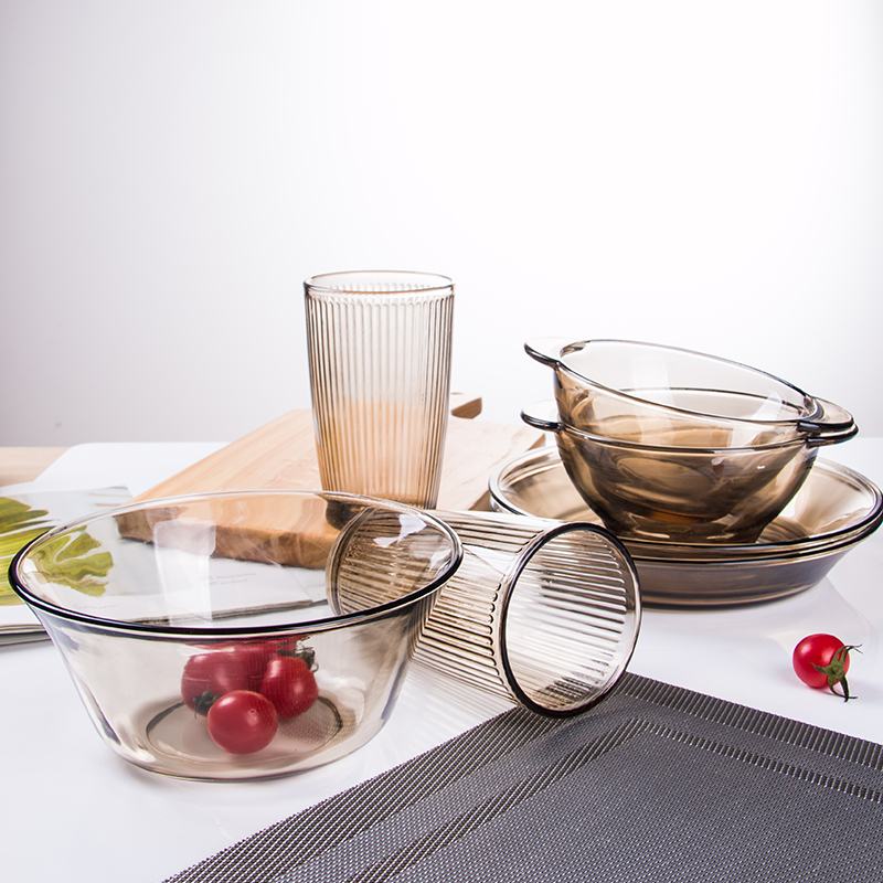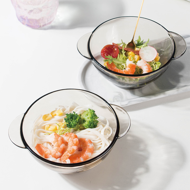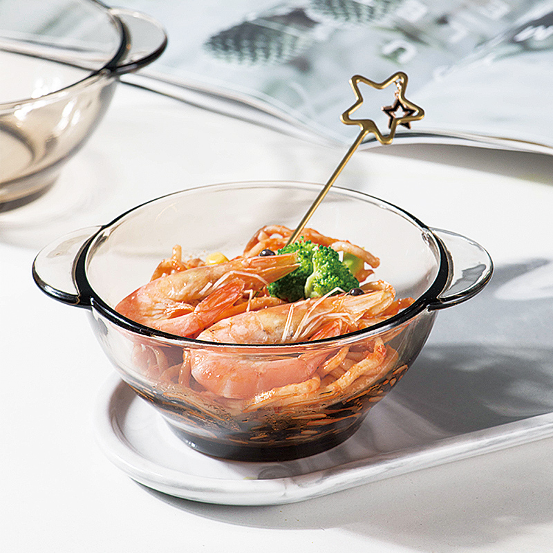 Binaural glass bowl Brown dish set Fruit salad bowl Household high temperature soup bowl Instant noodle bowl Rice bowl tableware