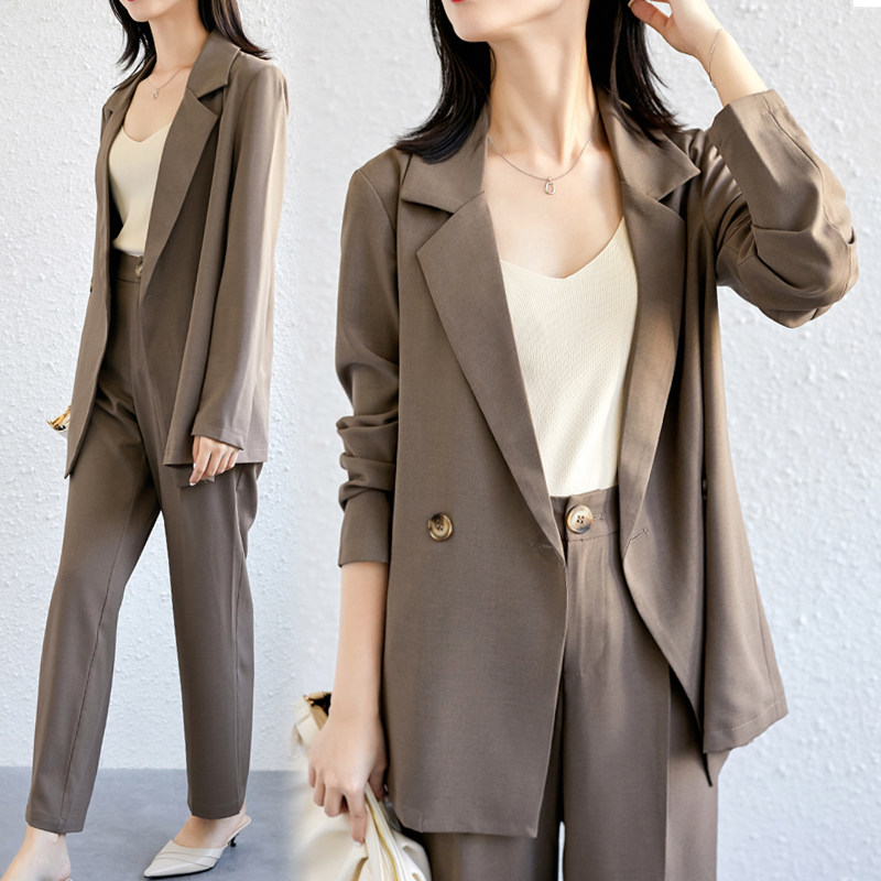 Black autumn two-piece suit Brown autumn two-piece suit Black ice silk two-piece suit Apricot ice silk two-piece black three-piece suit Apricot three-piece suit Pink three-quarter sleeve jacket Nine-quarter pants Summer black three-quarter-sleeve jacket Nine