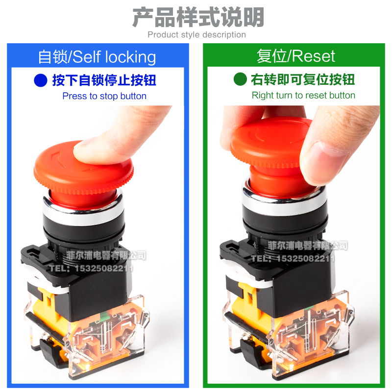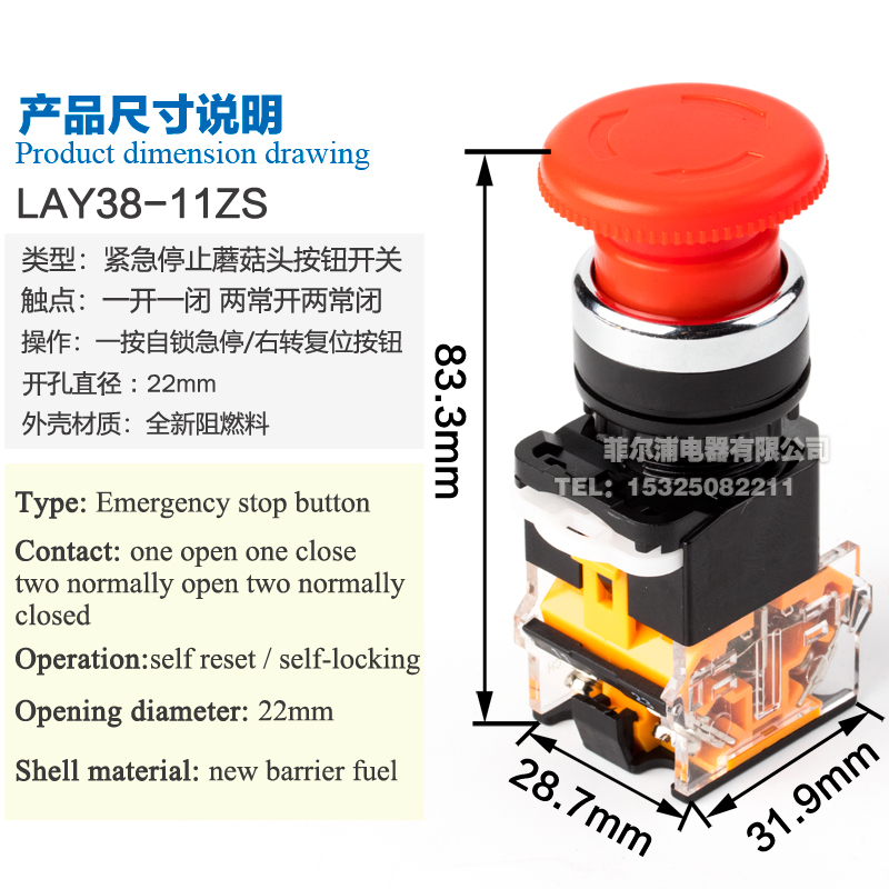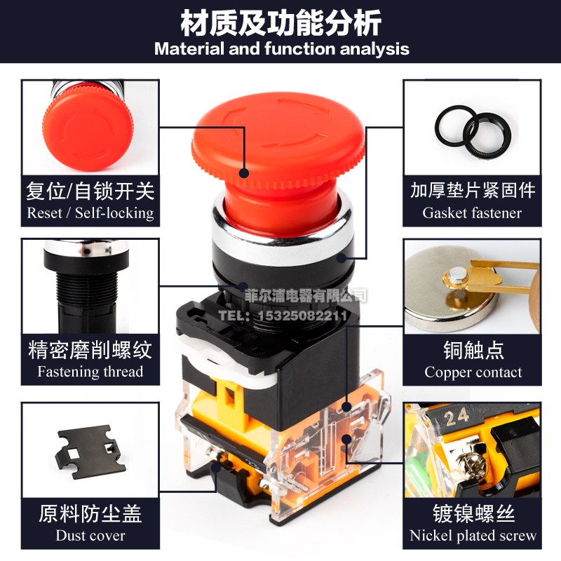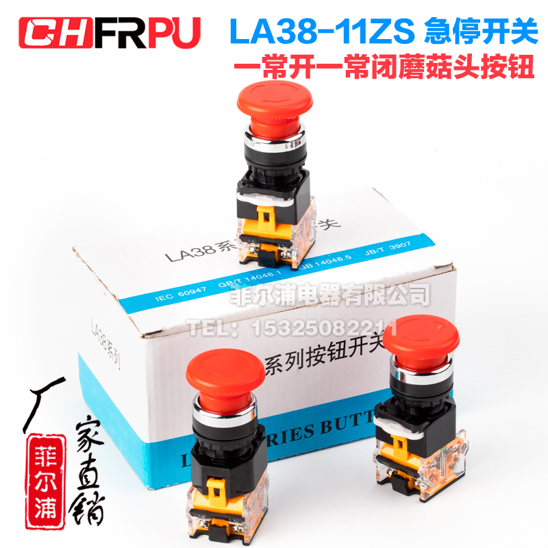 LA38-11ZS Power Emergency Stop Switch Mushroom Head Button 22mm One often open a normally closed self-lock emergency power off