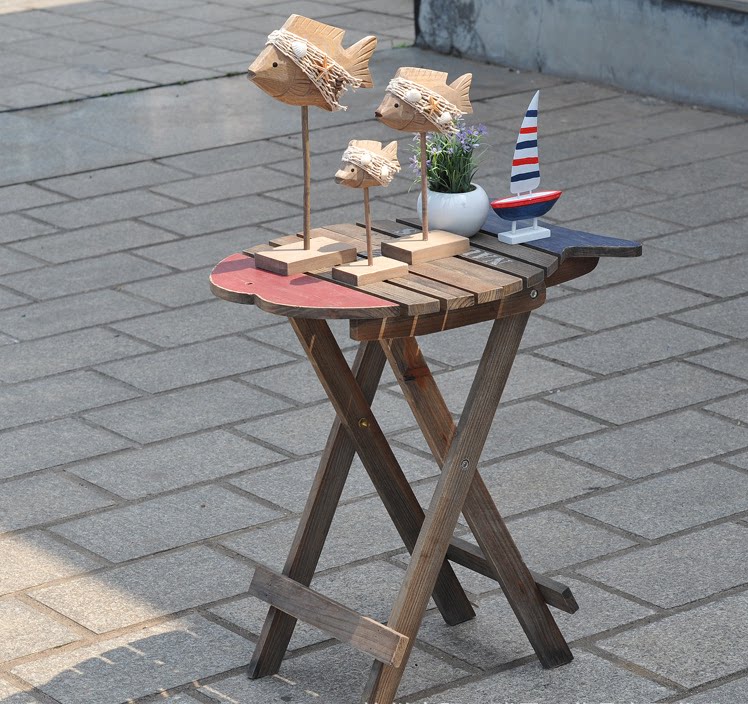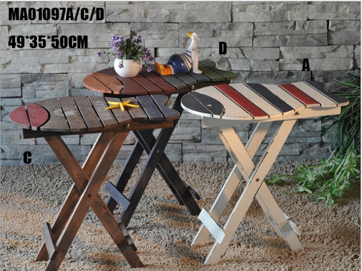 Mediterranean style shooting props solid wood old fish-shaped table flower stand decorative rack coffee table leisure folding table