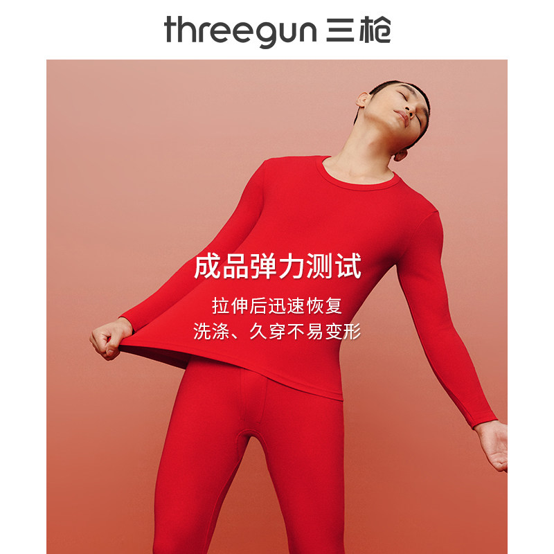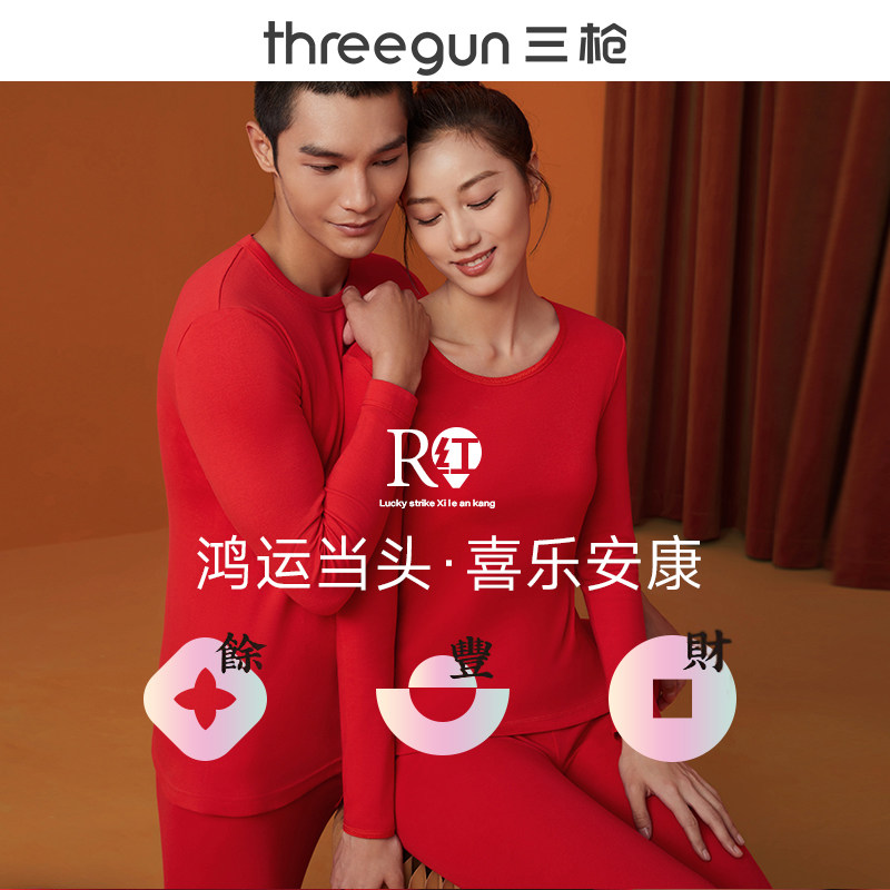 Three-gun warm underwear men pure cotton autumn pants suit big red ji qing this life rabbit annual cotton sweater bottom