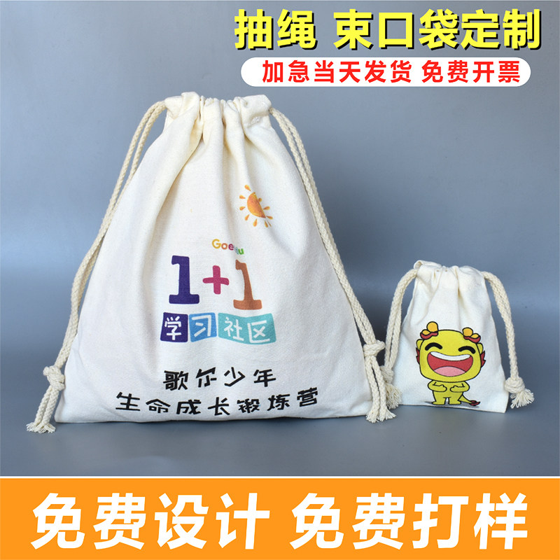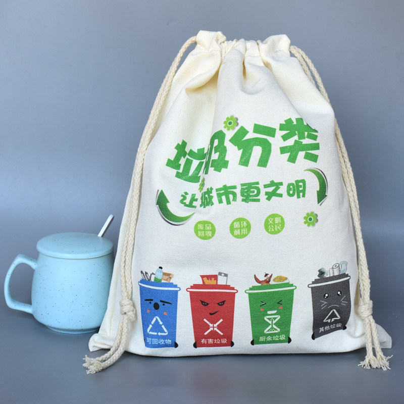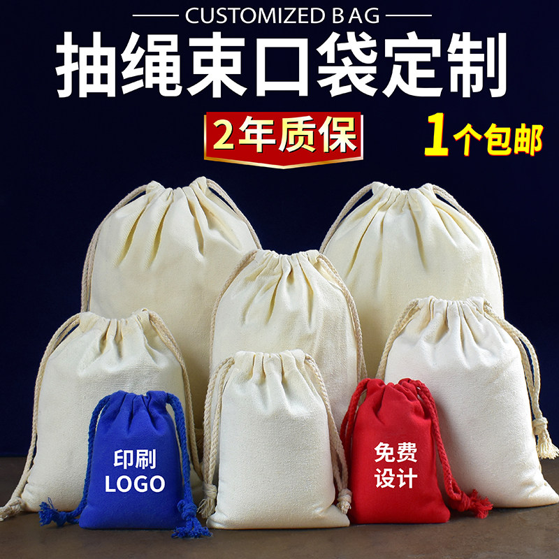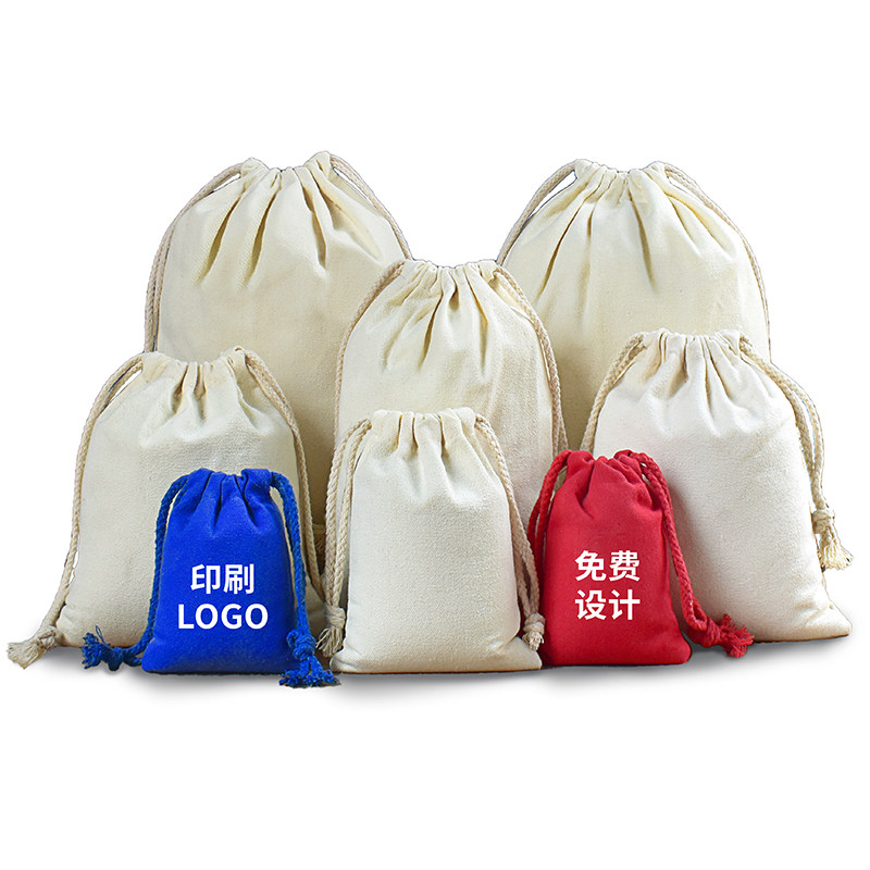 Beam Pocket Cramp Rope Collection Pocket Cotton Linen Embroidery Containing Shoulder Bag Canvas Flannel Rice Sand Bag Custom Print Logo