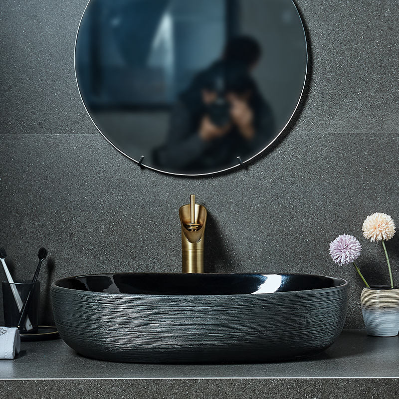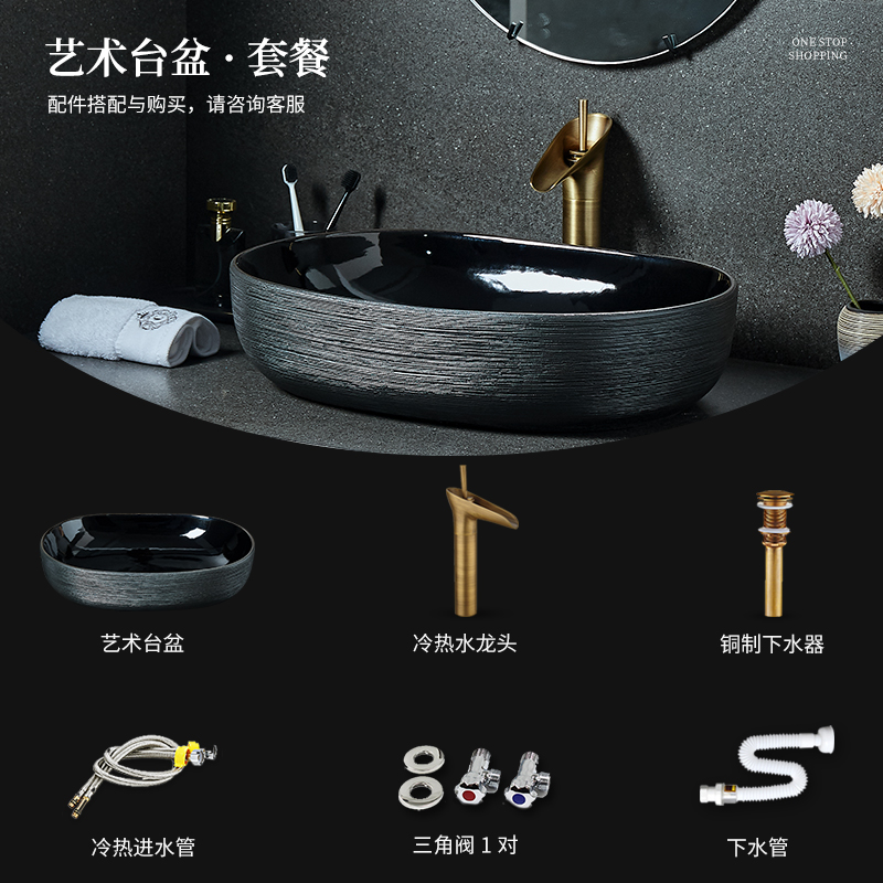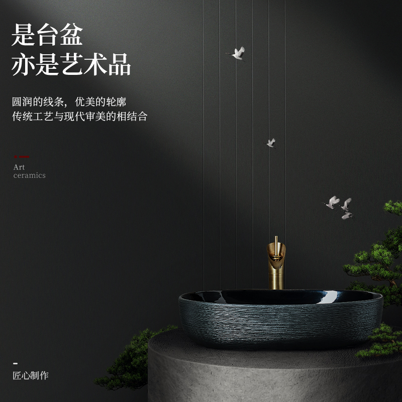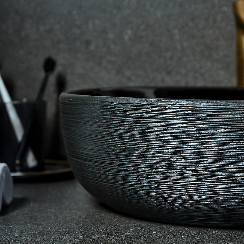 Network Endless New Black Wire Drawing Glaze Terrace Basin Ceramic Make-up Room Washbasin Retro Artist Use Table Basin