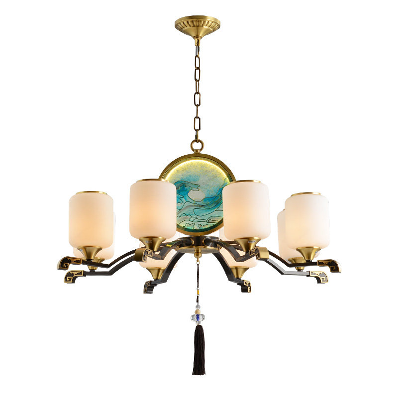 New Chinese Living Room Full Copper Pendant Lamp Modern Simplicity China Wind Classical Lamps Dining Room Lamp Glazed Color Bedroom Lamp