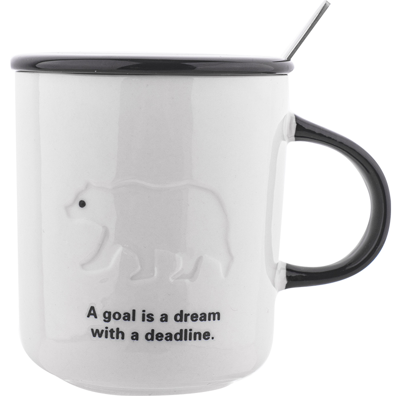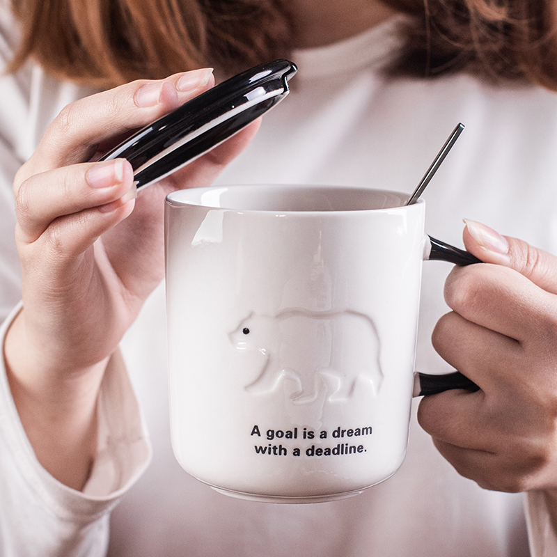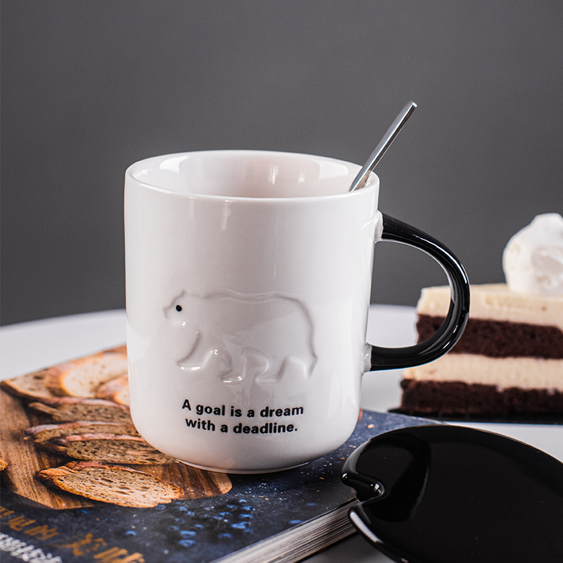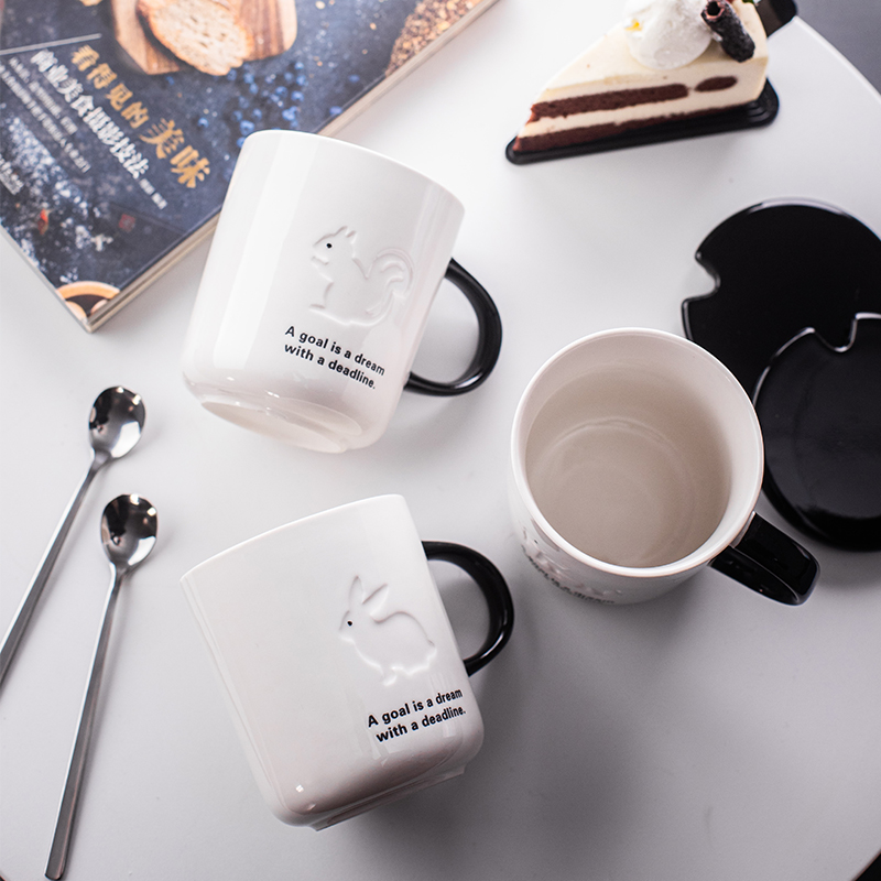 Simple animal ceramic mug with lid spoon Office creative water cup ins wind Nordic home coffee cup