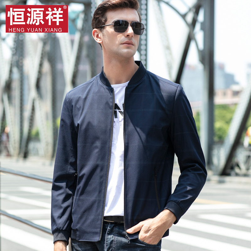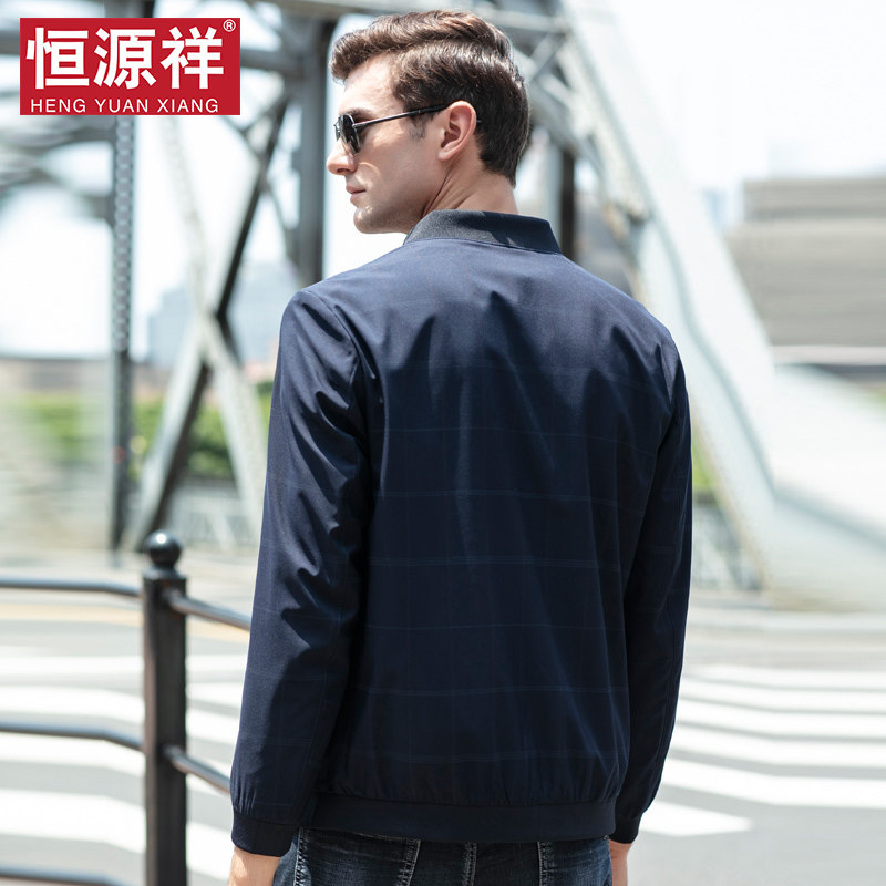 (Qingkura) Hengyuan Xiang middle-aged men's clothes jacket Spring and autumn money Daddy Lionai Collar Handsome and Baseball Uniform Pilot Jacket